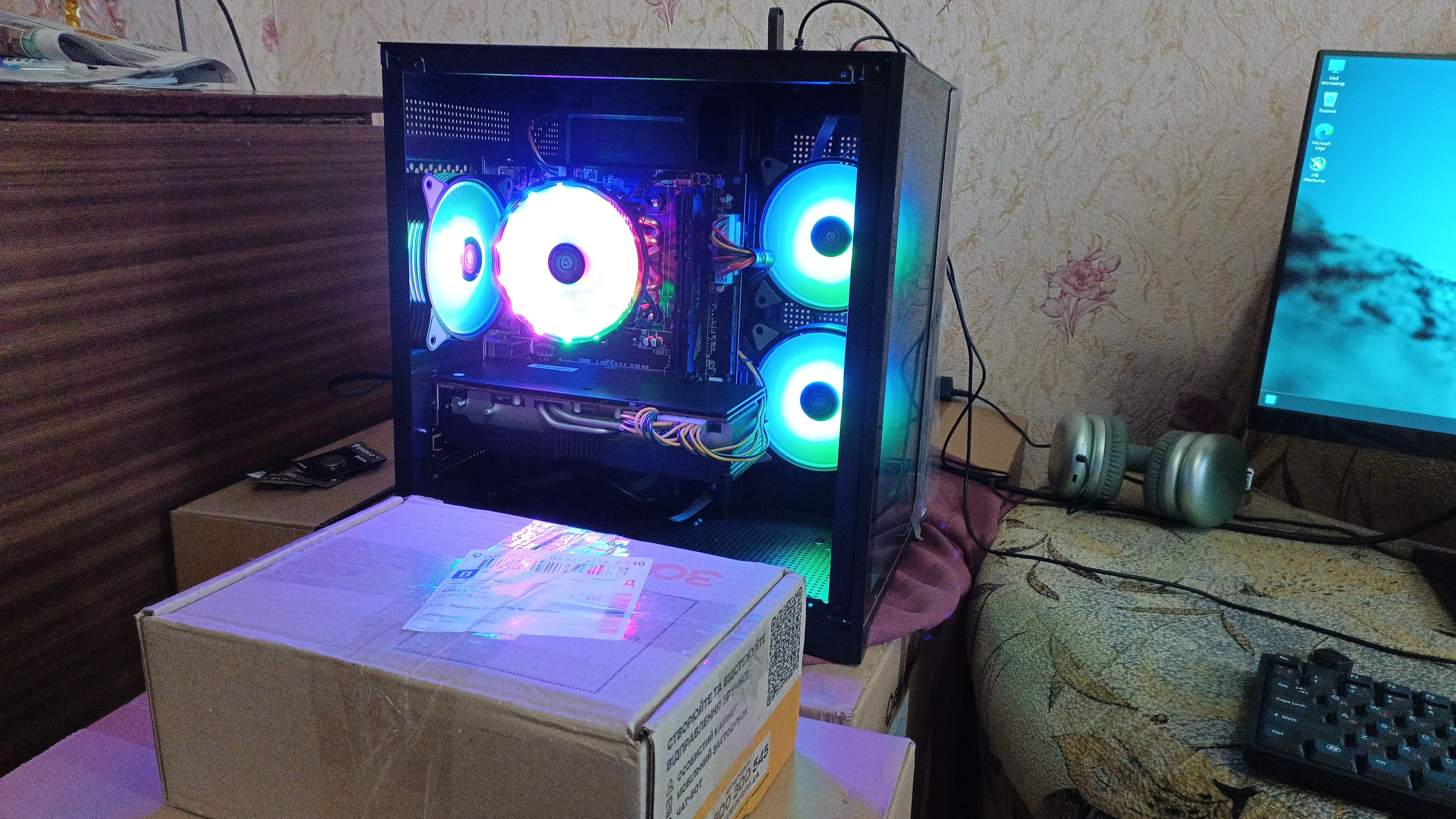 окно на боковой панели, отверстия для укладки кабелей, пылевой фильтр, RGB подсветка