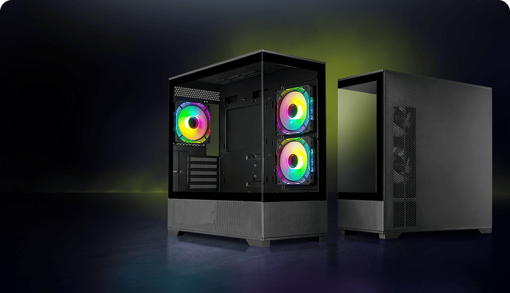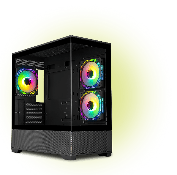 - Закалённое стекло толщиной 4 мм на передней и боковой панелях обеспечивает стильный вид и полный обзор внутренних компонентов.