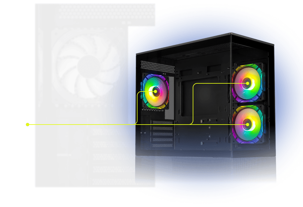 Поддержка до 6 вентиляторов 120 мм ARGB (3 вытяжных и 3 приточных) обеспечивает эффективную вентиляцию.