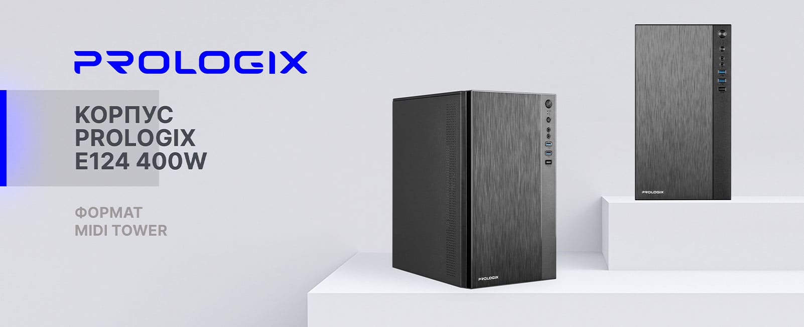 Корпус Prologix E 124 – идеален для сборки офисных ПК и нетребовательных домашних систем. Имеет хорошее соотношение цены и качества, оснащен встроенным БП на 400 Вт. Минималистичная внешность, функциональная передняя панель и эргономичное внутреннее пространство делает его одним из лучших решений в сегменте.