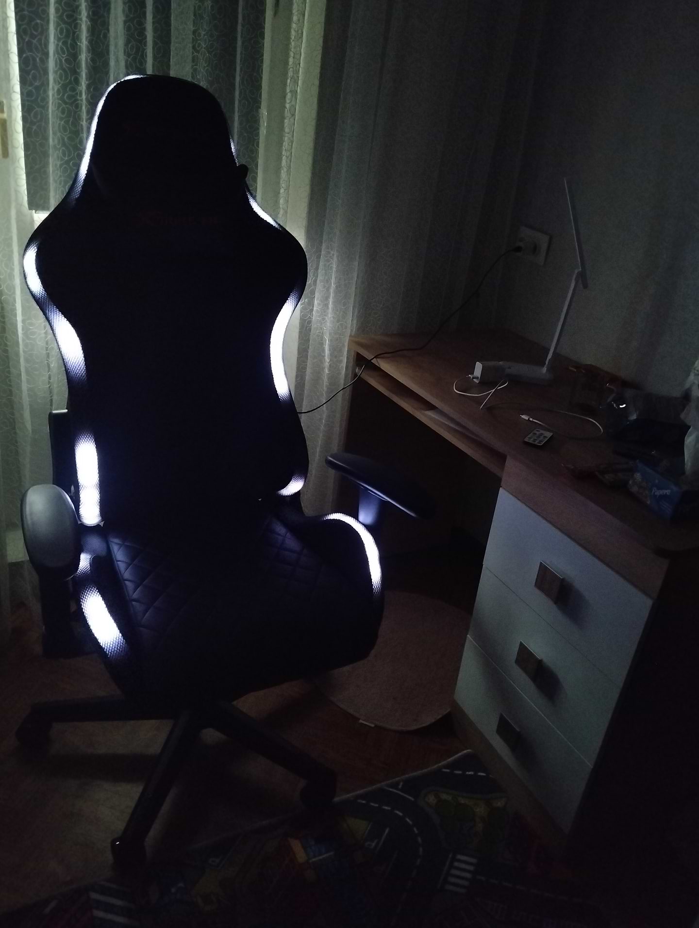 Красивое, удобное, классно что подлокотники регулируются. Подсветка В настоящее время очень кстати при отключения света.
