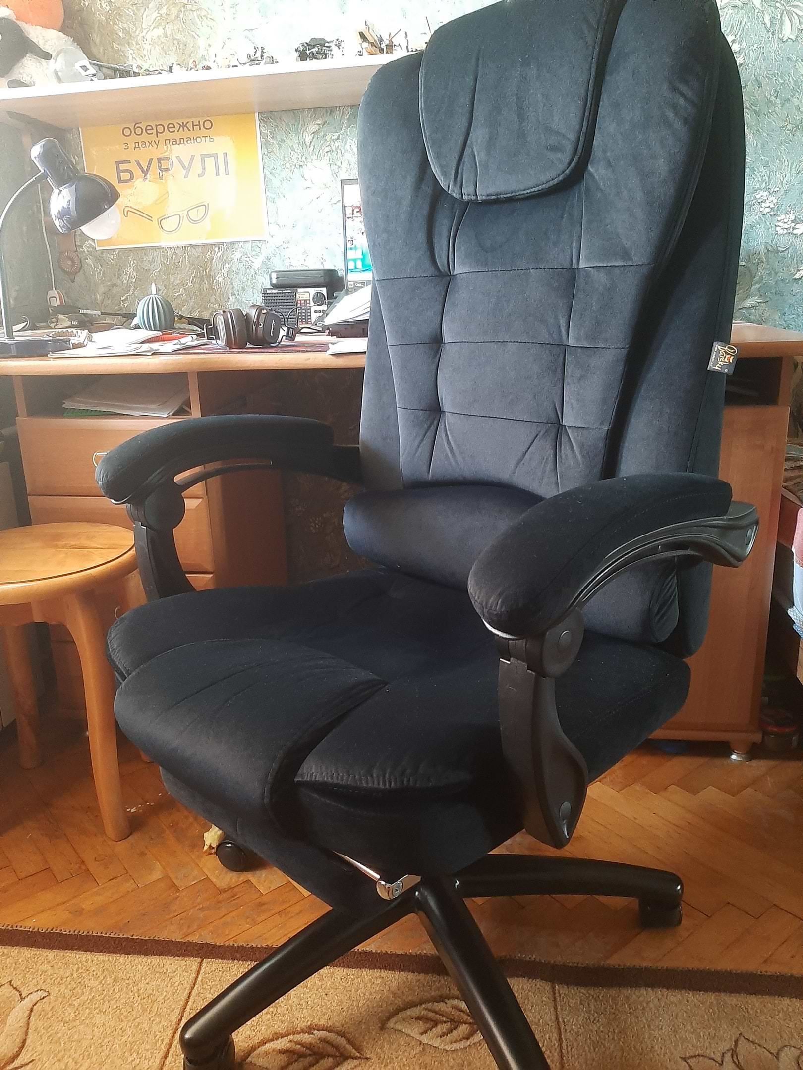 Крісло сподобалось, каркас металевий, дуже надійний, міцний. Замовили крісло доя 18-річного хлопця, він його зібрав за 40 хвилин без проблем. Спинка і сидіння дуже зручні. Матеріал оббивки гарний, приємний.