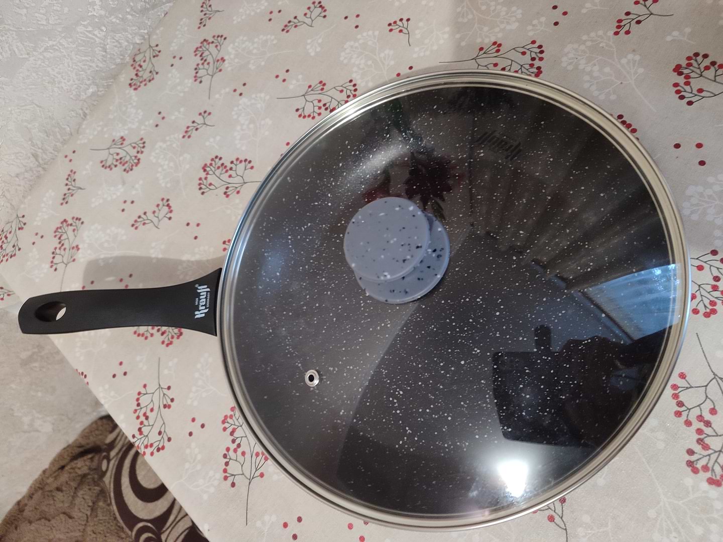Придбала пательню і кришку як раз по акції. Дуже задоволена покупкою. Кришка має міцне скло, силіконовий обідок по краю і приємну силіконову ручку. Рекомендую.