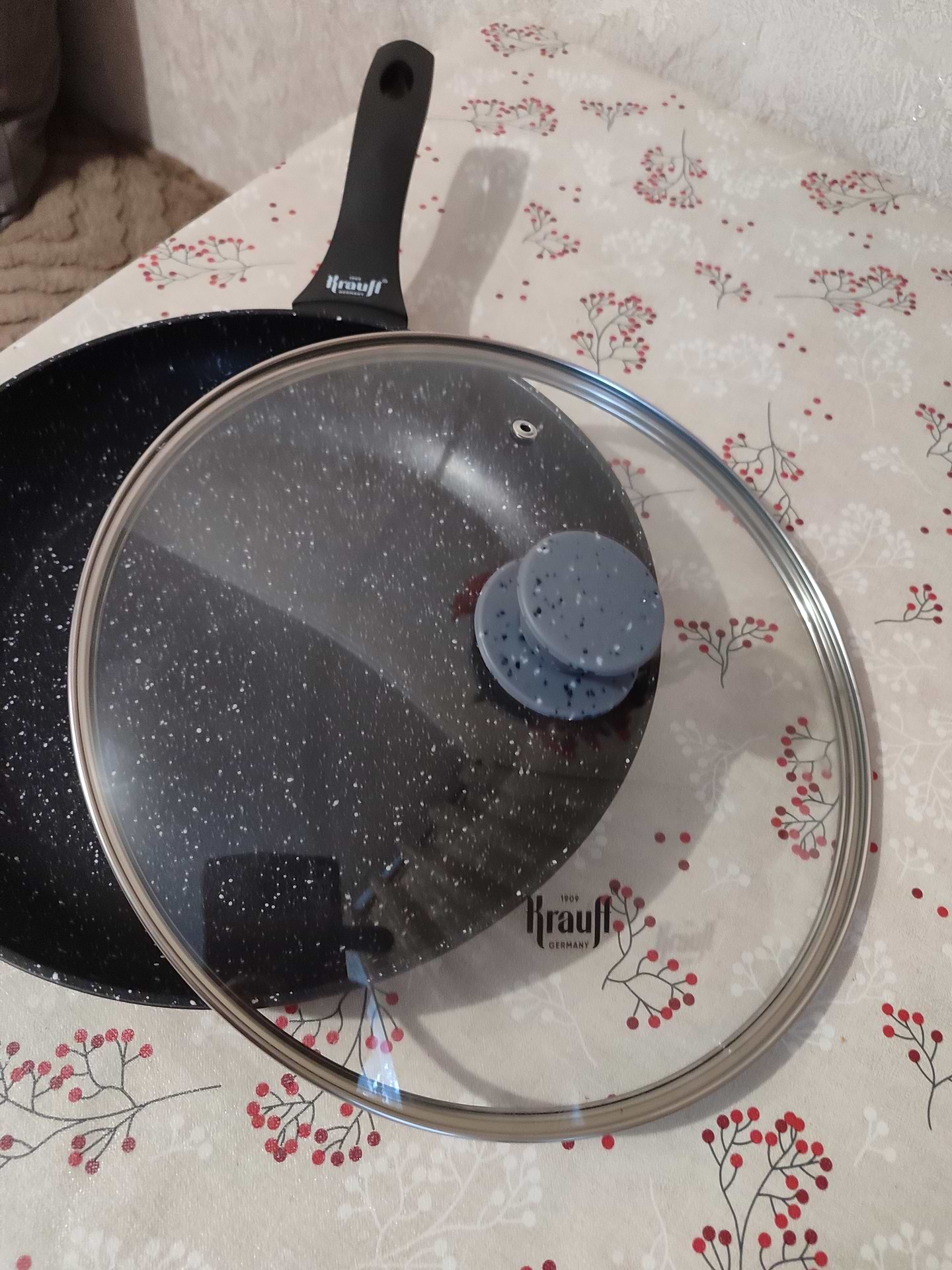 Кришка чудова! Вона важка ,не ковзає по сковорідці! Якість скла хорошаПідходить до сковорідки цієї ж фірми.Замовила 4 сковорідки і 3 кришки фірми Крауф по хорошій знижці! Брала на подарунки та для власного користування! Підходить також для моєї сковорідки другої фірми,такого ж розміру!
