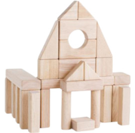 Комплект из 84 деталей дает возможность юным инженерам создавать здания, мосты и другие конструкции. Блоки различных форм из дерева обеспечивают часы непрерывной традиционной игры.