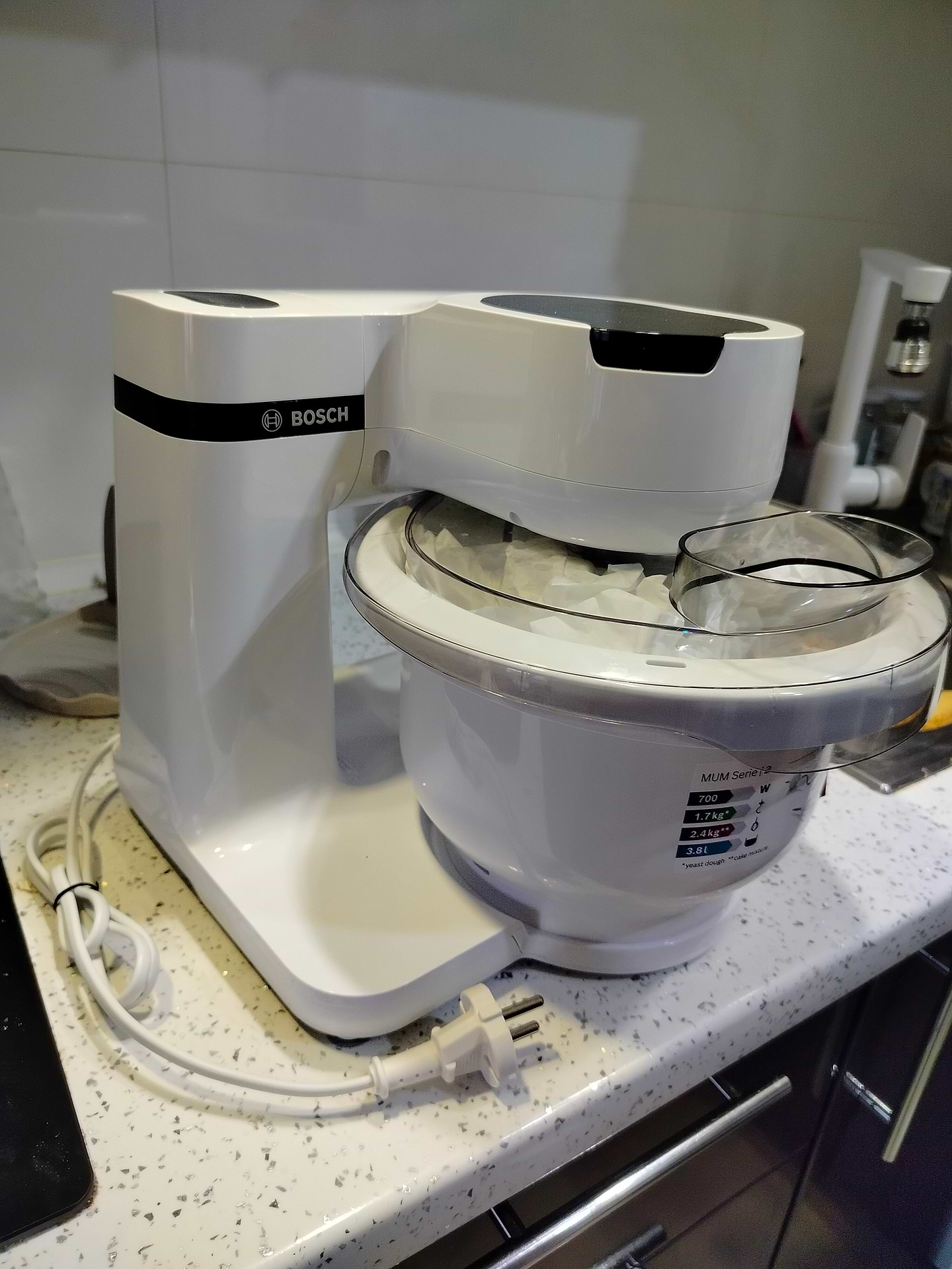 Купила собі в подарунок після консультації з продавцем в магазині Комфі. По-перше виглядає кухонна машина дуже стильно, вона компактна та чудово вписується на кухню. Вже спробувала в роботі - з густим тістом на булочки справилася на відмінно. Насадки підхоплюють все з чаші. І великий плюс, що в майбутньому можна докупити додаткові аксесуари