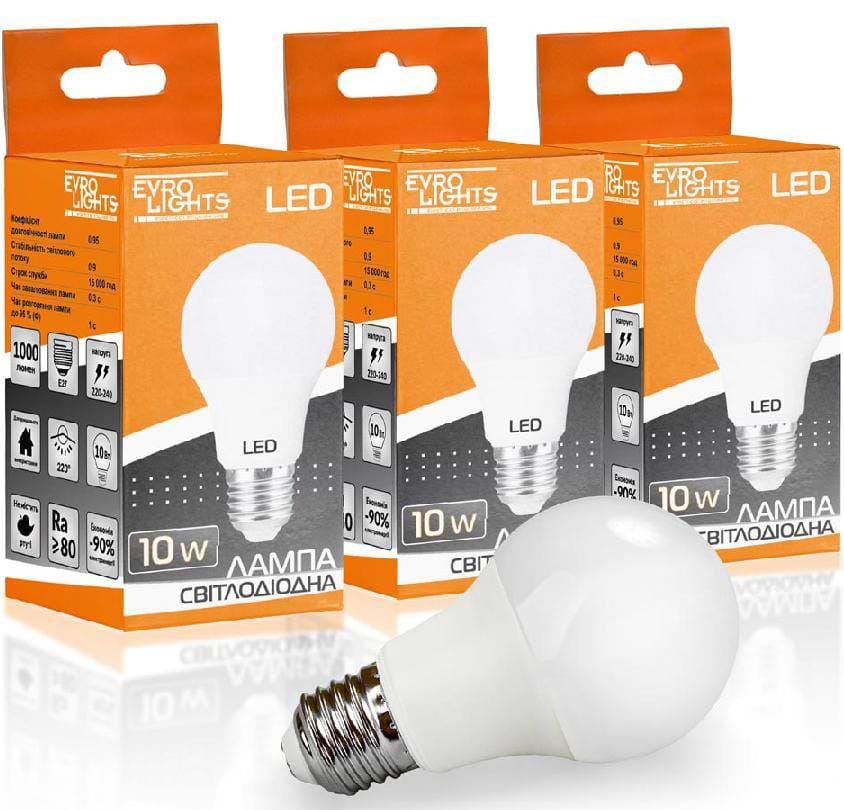 Все о Лампочка светодиодная EVROLIGHT 10Вт 4200К A-10-4200-27 Е27 3 шт. (000058944)