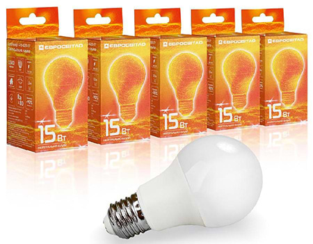 Лампочка светодиодная Євросвітло 15Вт 4200К A-15-4200-27 Е27 5 шт. (000040912)