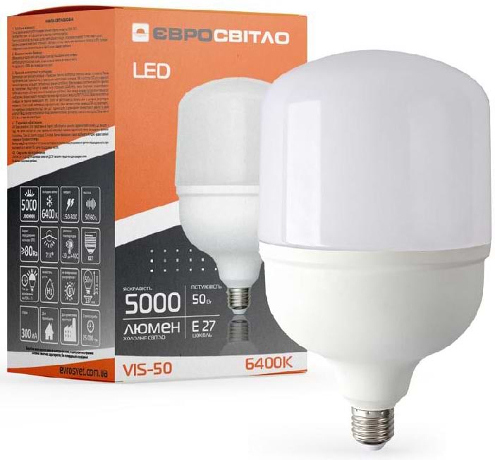 Все о Лампочка светодиодная Євросвітло 50Вт 6400К VIS-50-E27 (000040891)