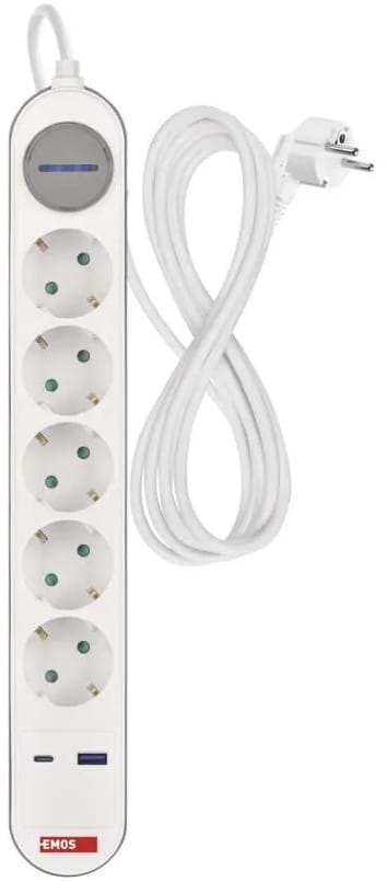 Характеристики EMOS P1523FC 5розетки 3м. 1xUSB-A+1xUSB-C