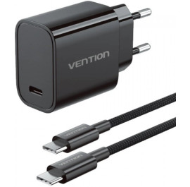 Сетевое зарядное устройство Vention 1xUSB-C 30W + USB-C cable М-М Black (G18B0-EU)