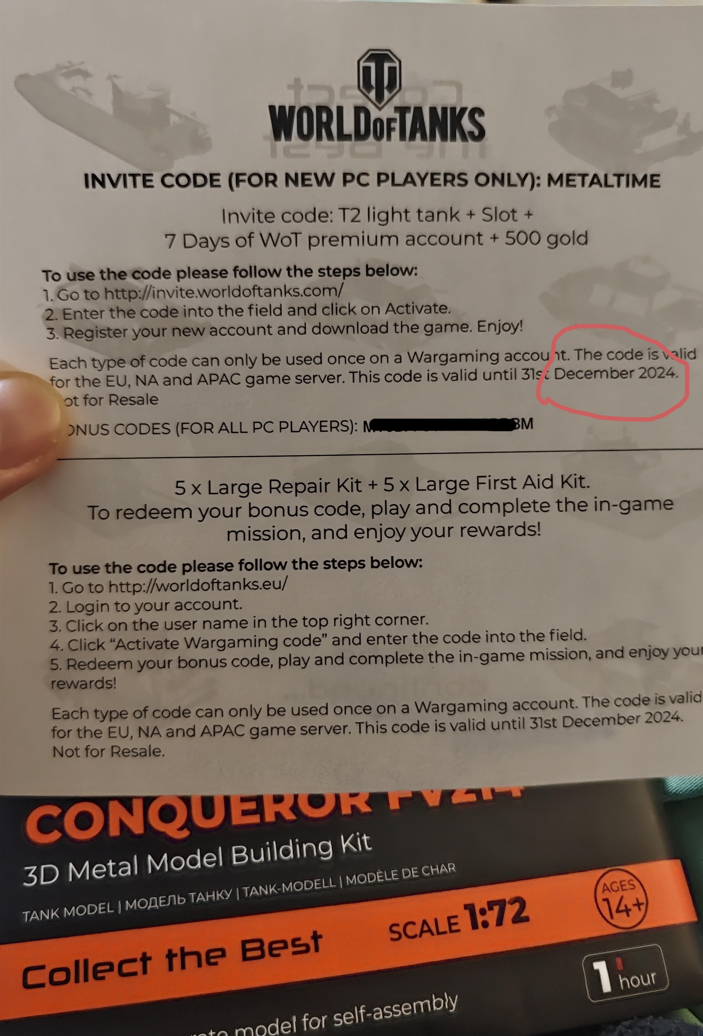 танчик з дуже тонкою бронею метал дуже тонкий абонуси які були написані на коробці вони не діють вони були дійсні до 24-го року.