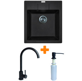 Мойка кухонная+смеситель+дозатор Adamant Brick черный (4824296209703)