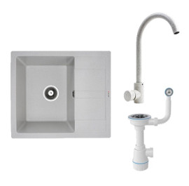 Мойка кухонная+смеситель VALESO ARIA 5851 белая в точку +56 B NESP белая в точку +Сифон 1041