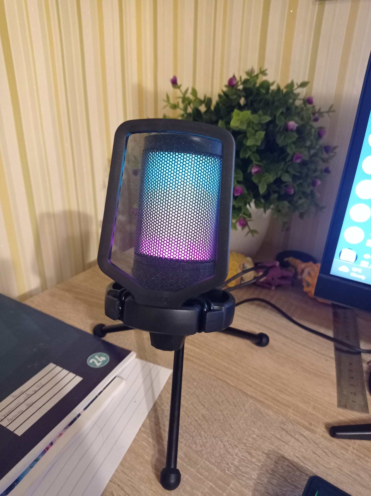 Гарний мікрофон. Завдяки діаграмі направленості записує менше сторонніх звуків. Подобається сенсорна кнопка м'ют (значно зручніше пальцем її натискати, ніж клікати мишкою). Є RGB індикація режиму роботи - тобто візуально видно чи мікрофон на м'юті.