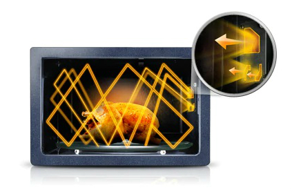 Необходимой функцией качественной микроволновой печи является возможность нагреть как плоское блюдо, так и объемный стакан с любой жидкостью. В недорогих моделях печей вы получите непостоянный результат и минимальную эффективность работы прибора, в зависимости от направленности излучателя. В современной же Samsung ME83KRW-1/BW, купить в Киеве которую вы можете быстро, применяются новейшие способы распределения СВЧ-волн, чтобы они полноценно справлялись с продуктами любой формы и размера. Примененная технология Triple Distribution System помогает излучателю перенаправлять волны по всему внутреннему пространству прибора. Это достигается их многократным отражением от поверхности и, благодаря этому, подогрев, размораживание и даже полноценное приготовление будет происходить быстрее и качественней любых других аналогичных приборов.