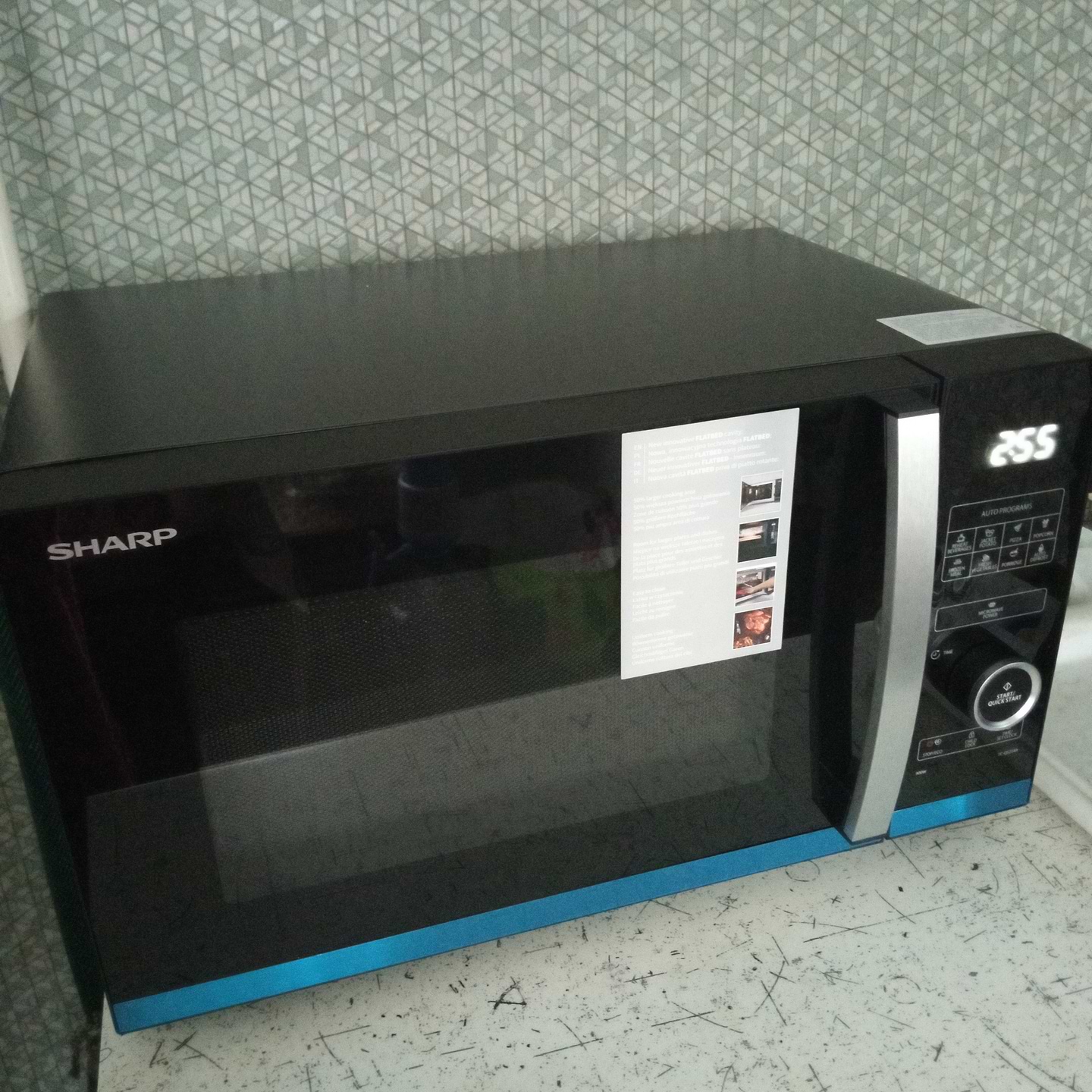 Дуже гарна мікрохвильова піч, великий розмір, дуже подобається, що без поворотного столу. Має стильний дизайн.
