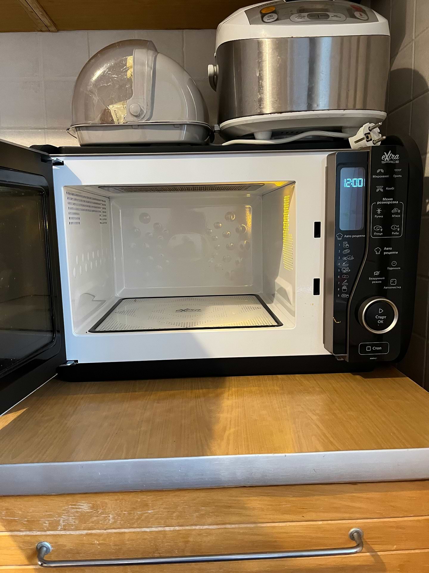 Модель займає трохи більше місця на кухні, ніж стандартні мікрохвильовки.