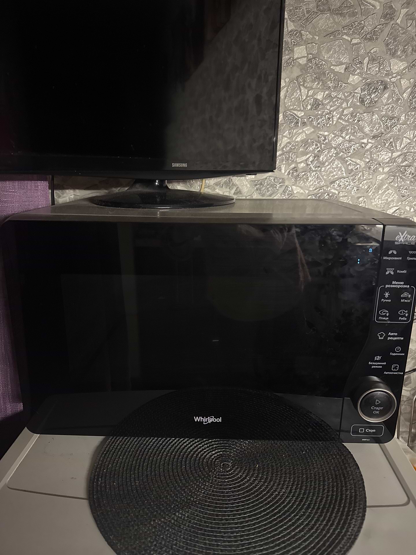 Брали на заміну старій мікрохвильовці, в якої була поворотна тарілка. У Whirlpool MWF 421 SL без поворотної тарілки, місткість камери стала значно більшою, як і зручність у використанні. Гарний дизайн, зручна і продумана панель керування, швидка і потужна функція нагріву. У період відключень світла, без проблем працює від домашньої EcoFlow"ки. Зручно чиститься, і витирається. Дуже раджу дану модель!