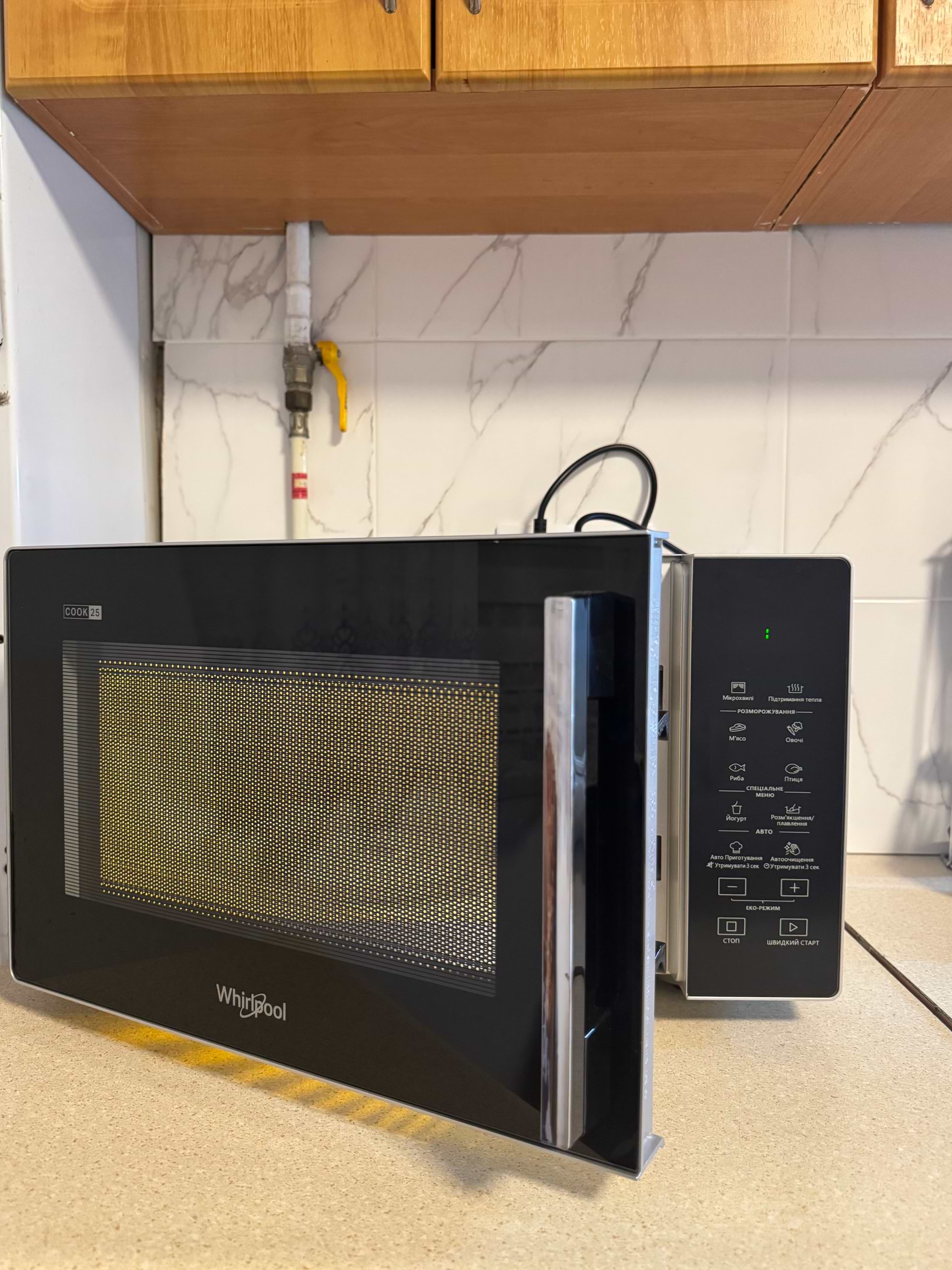 Замовив мікрохвильову піч Whirlpool MWP 251SB. Вибрав цей бренд, бо вже довгий час користуюсь пралкою цього бренду, і задоволений. Перевагою у виборі , саме цієї моделі, став факт потужності в 900 Вт і деяких функцій, яких не було , в моїй попередній пічці .