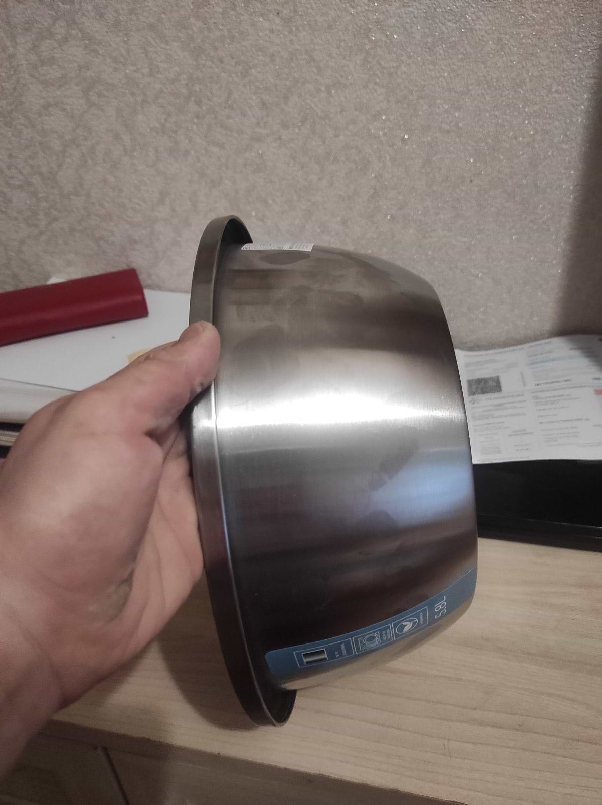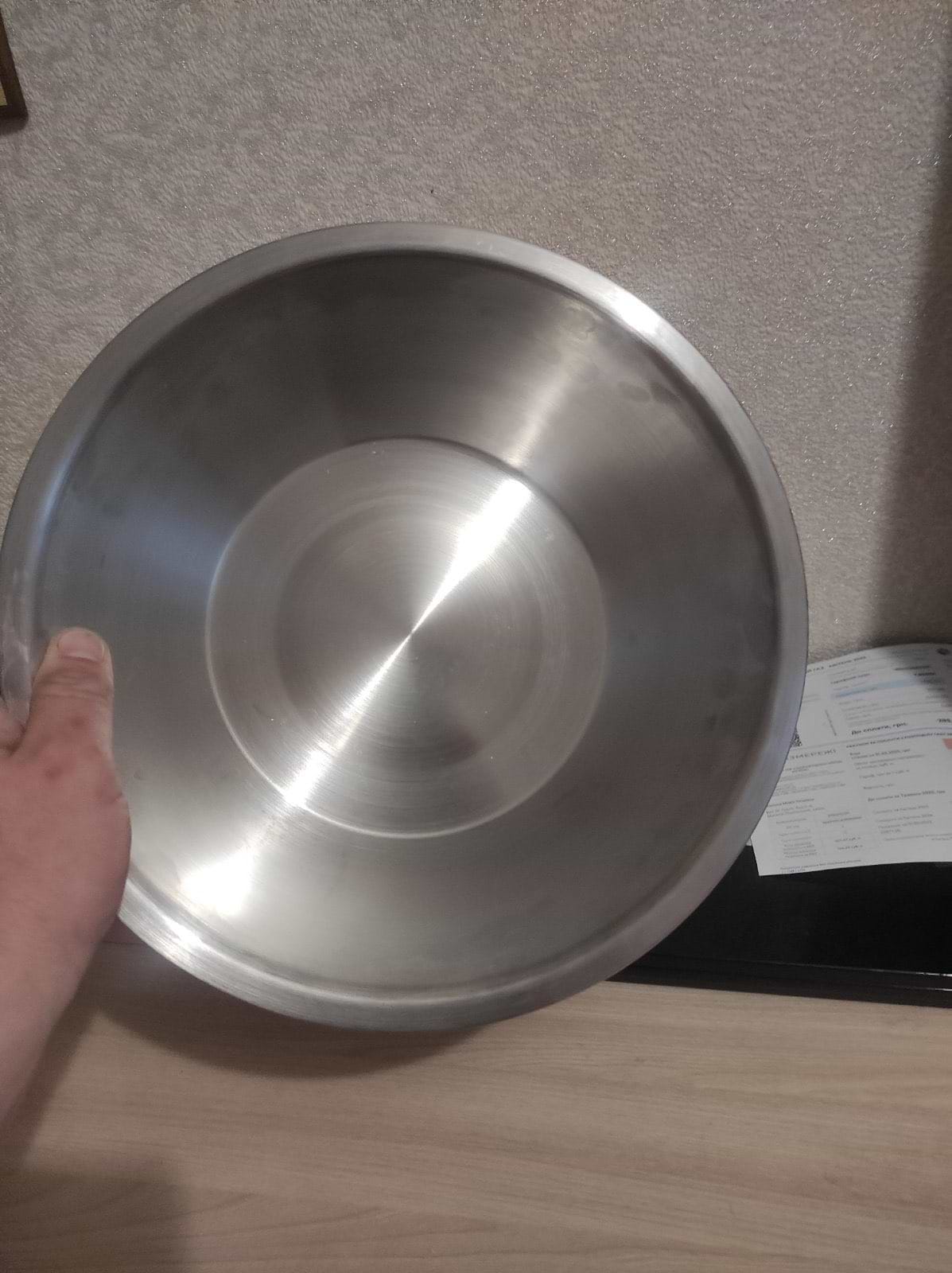 Миска сподобалась , гарна якість і я купила ще меньшу . Митал міцний і буде довго слогувати у мене на кухні . Рекомендую !