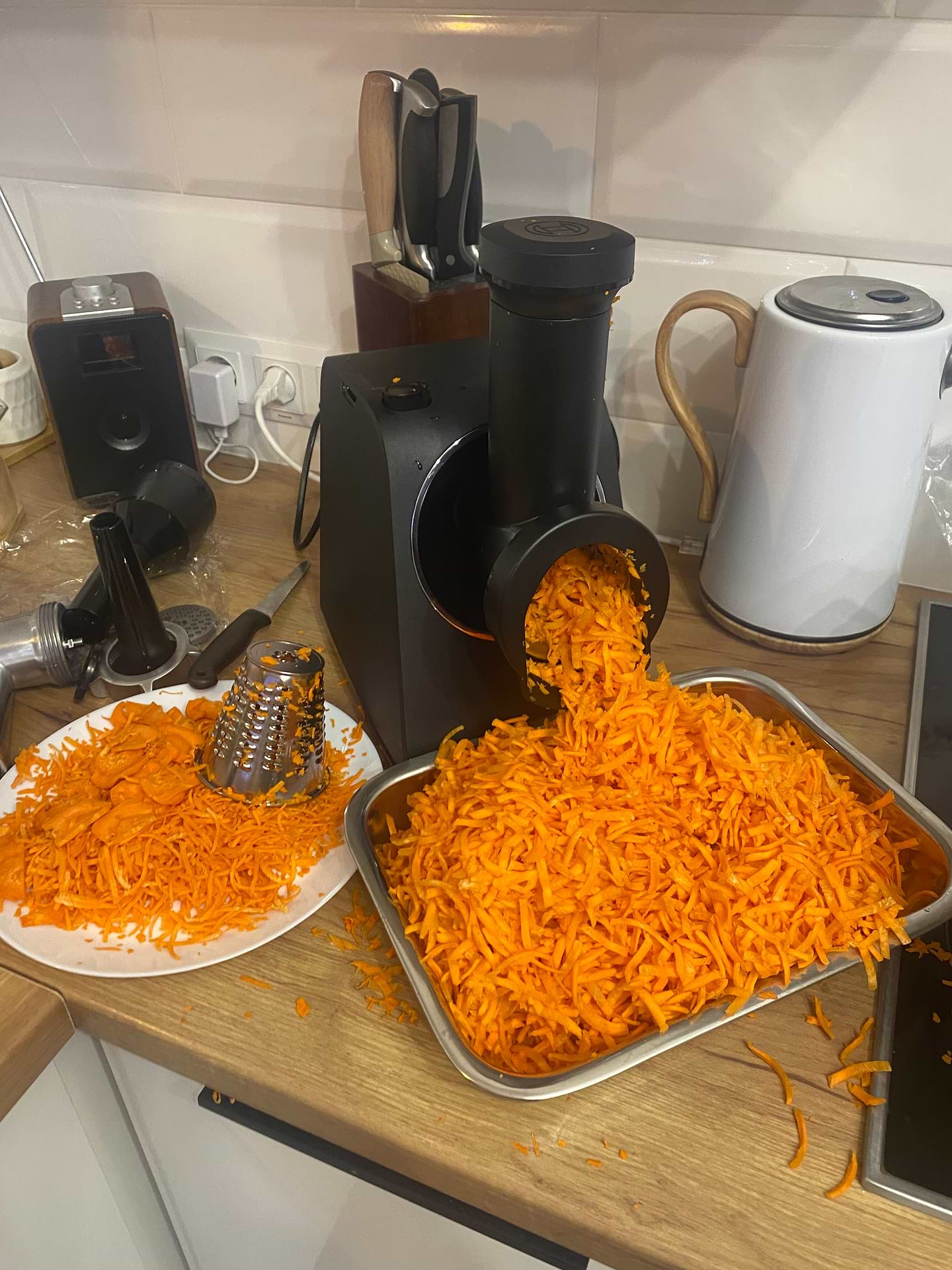 Стильна, якісна мʼясорубка. В перший день перепробувала всі фунції. Мʼясо, сало перемелює ьез проблем, дуже легко, овочі натерла теж швидко, не важливо чи дуже свіжа була морква, чи навіть привʼяла. Справилась, а от насадка на дируни дуже смущає. два рази використовувала, але так картопля важко іде, треба сильно тиснути (боюсь не відоамати кріплення) тим товкачем, навіть різала на менші шматки, то на деруни важко натирає.