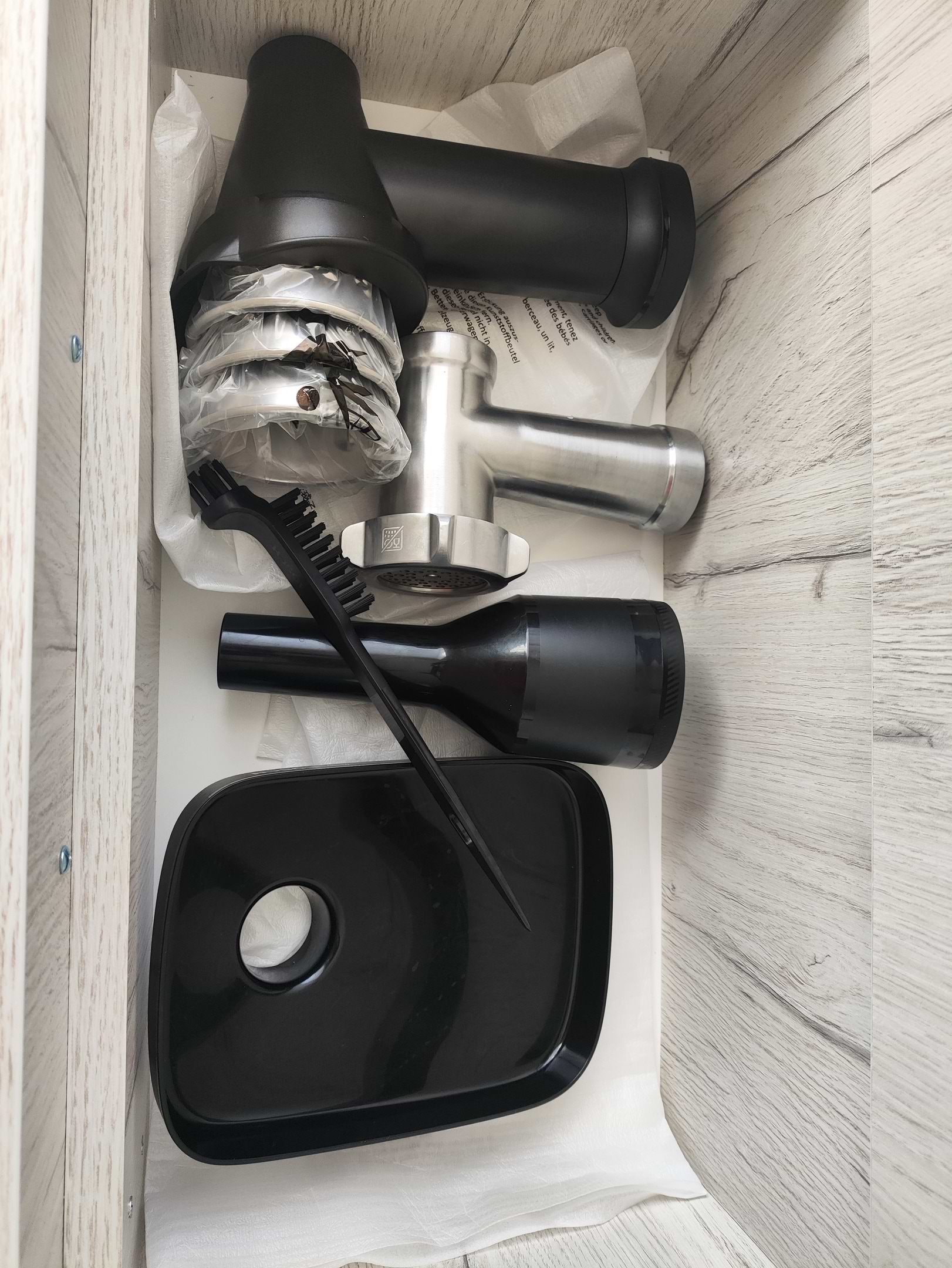 Крута мясорубка, яка має чудовий ніж ( двосторонній). Дуже тихо працює. Має регулювання потужності і кабель, який ховається в корпусі. Крутили томатний сік... результат супер... Рекомендую до покупки !!!