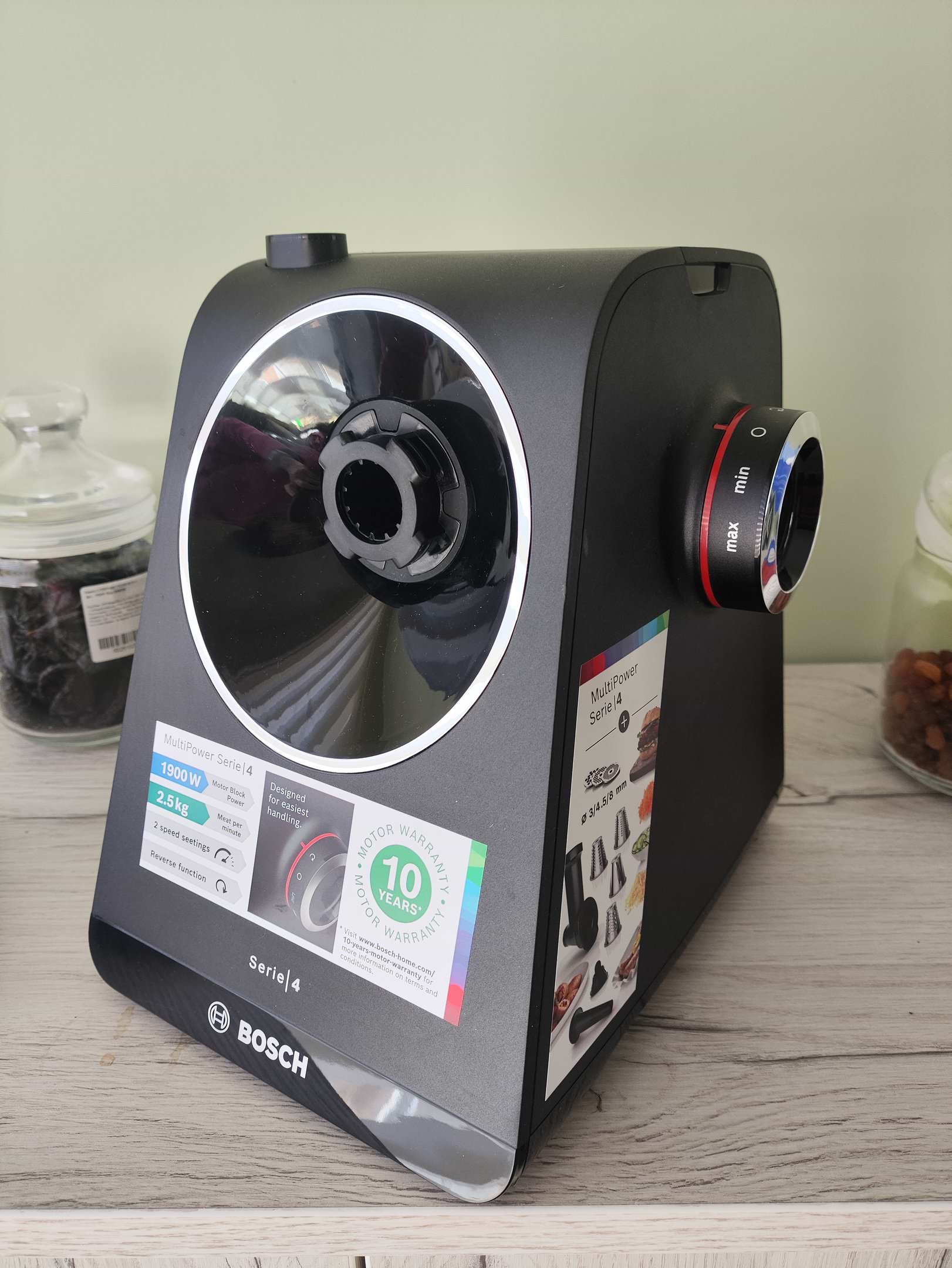 Дуже гарна мясорубка від іменитого бренда. Мясо перемелює швидко та не гріється. Шнур зручно ховається в корпус мясорубки.