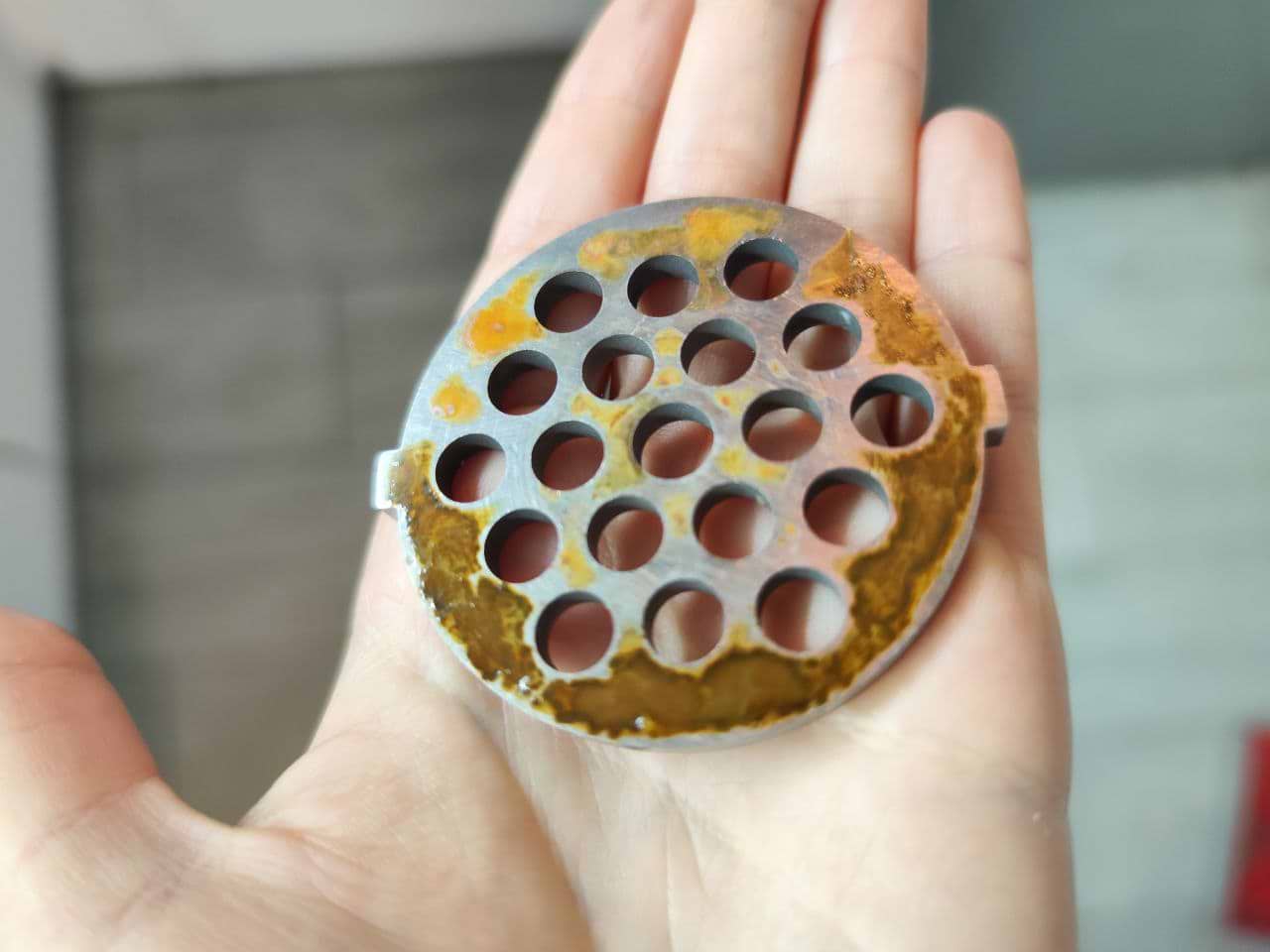 Іржа, доречі, прибирається протиранрям губкою смоченою в розчині лимонної кислоти (на останньому фото решітка вже очищена)