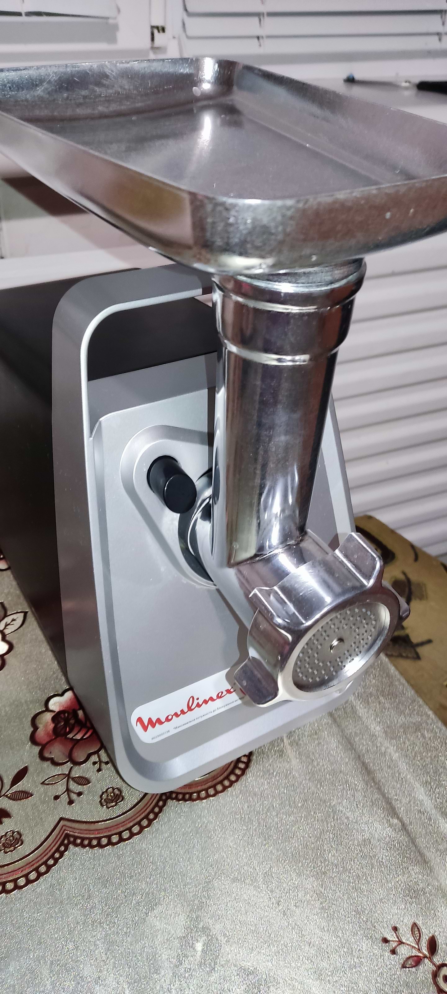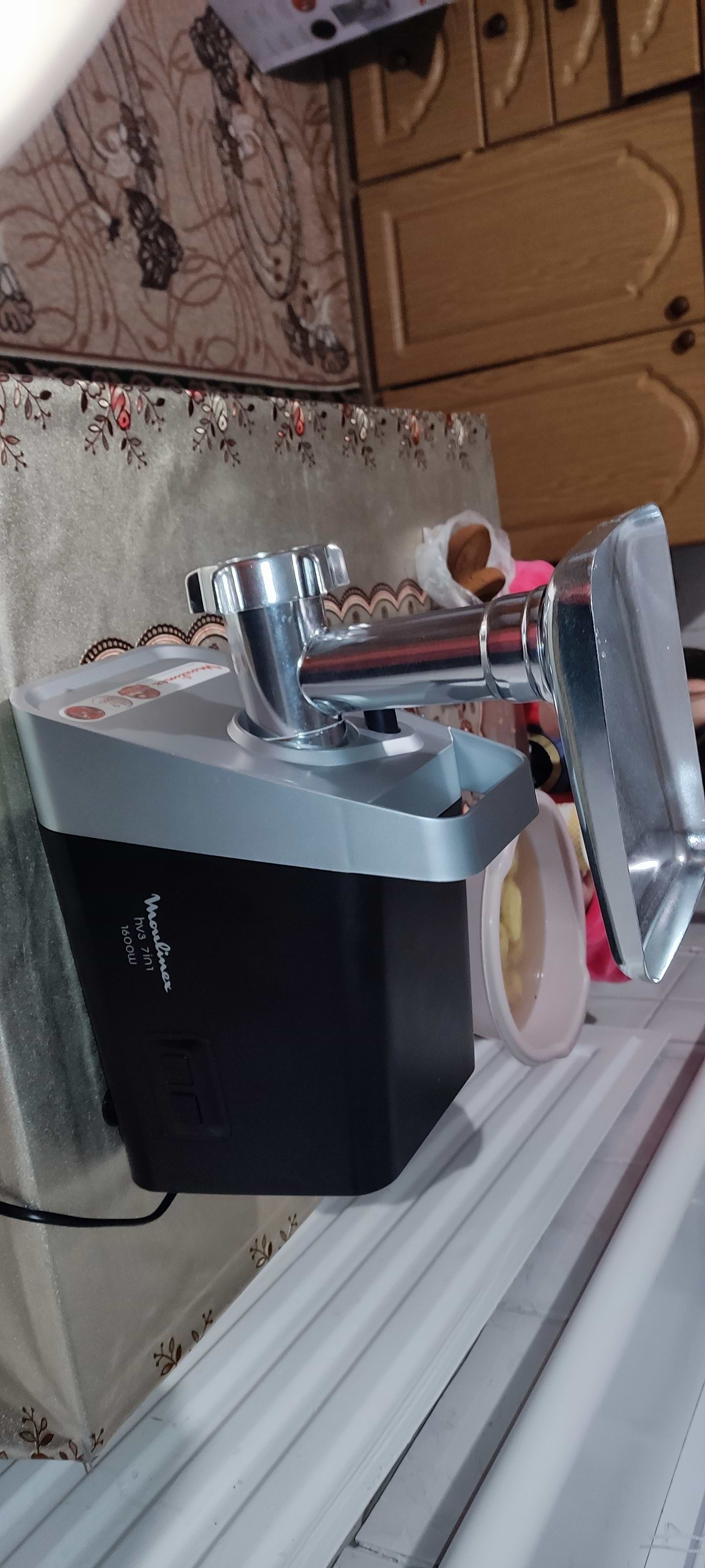 Придбала за супер ціною цю чудову м'ясорубку.Довго вагалась у виборі- але не шкодую.Вона повністю справляється з своєю роботою: перекручує чудово,шинковки теж чудово подрібнюють та шаткують.Картоплю просто швидко так перекручує,і видно ,що немає навантаження на мотор абсолютно.Єдине,що ще не спробувала- насадку на сік.