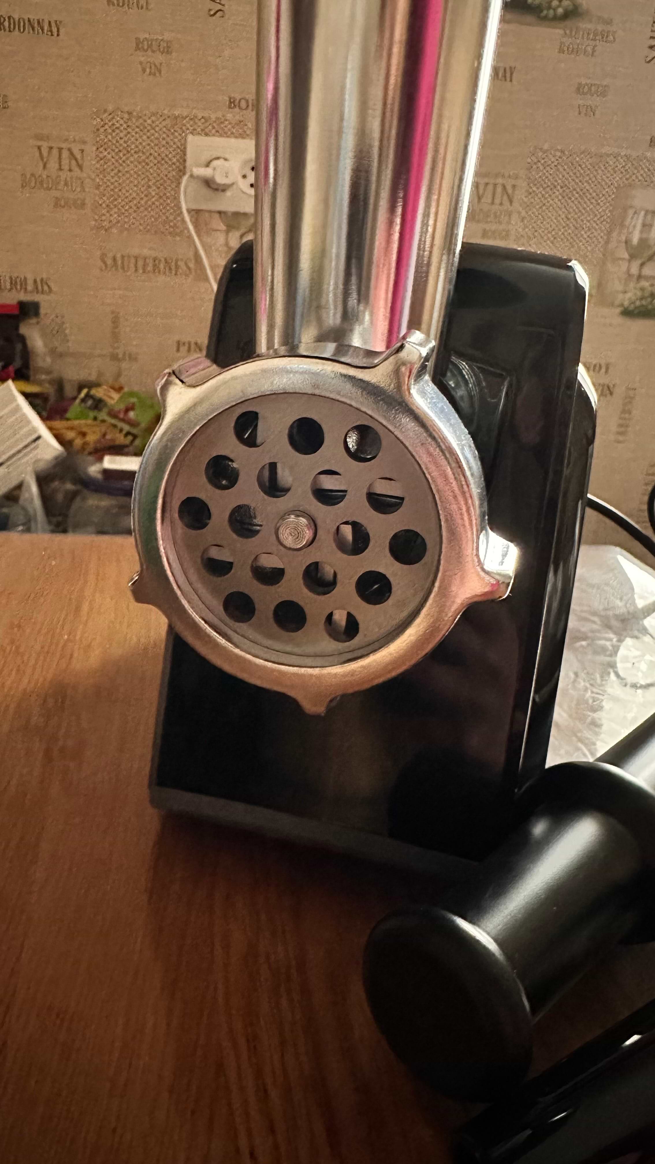 Комплектация В комплекте две решетки из нержавеющей стали для двух типов измельчения, в зависимости от вашего рецепта и насадка для колбасок и толкатель.