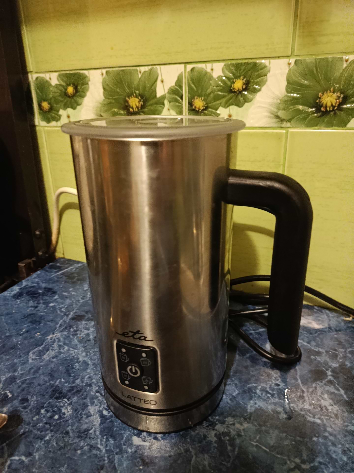 Тихий, чудово збиває молоко, має чотири швидкості. Важкенький, виглядає як маленький чайник. Має дві насадки: одна для збивання, друга насадка для змішування, вона кріпиться на кришку капучинатора.