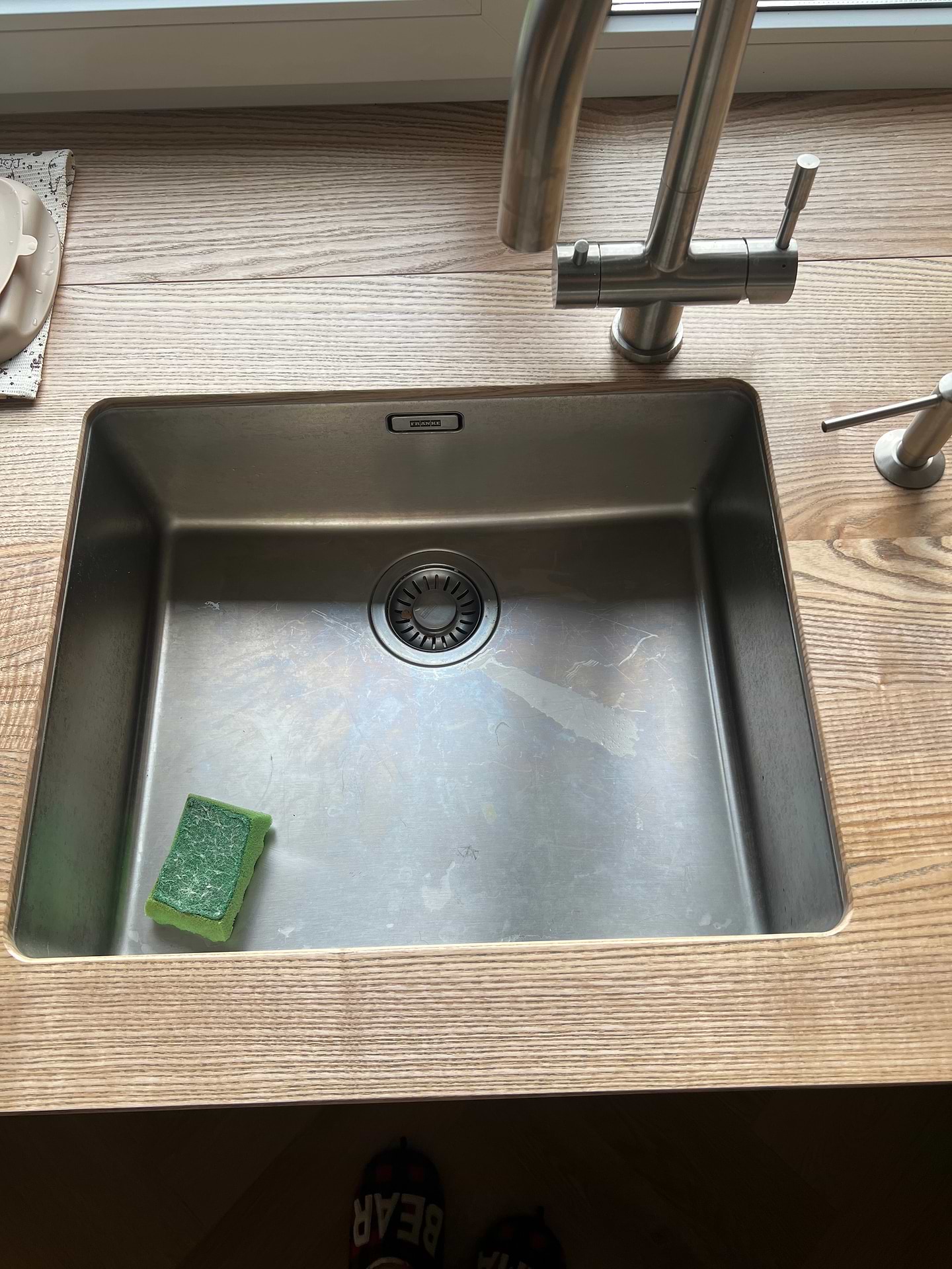 Після звичайної нержавійки я дуже неприємно вражена цією від Франке. Складається враження, що це мийка для тих кухонь, на яких ніхто ніколи не готує. Маючи фільтр для води, на ній в перший же день залишились сліди води, які ледь змиваються спецзасобом. Мити можна лише мʼякою губкою - це лиш ускладнює процес. Поставила в мийку банку з-під кукурудзи, тепер маю назавжди слід іржі, який ніяк не вимити. Єдиний плюс - розмір. Не рекомендую.