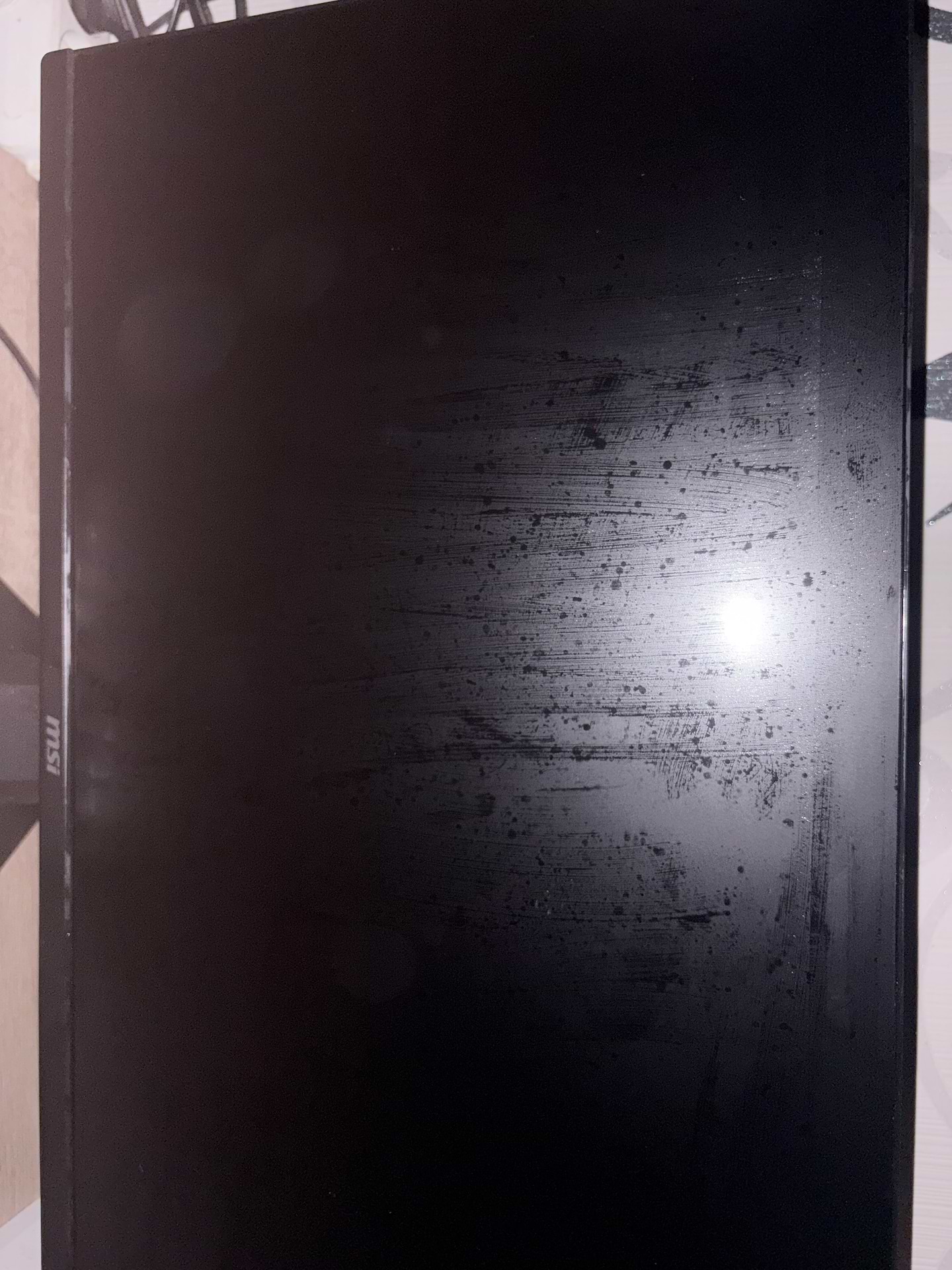 здраствуйте, появилась такая проблема ниже прикреплю фото, какие-то черные точки, даже когда монитор протирается они не убираются, кто знает что это подскажите