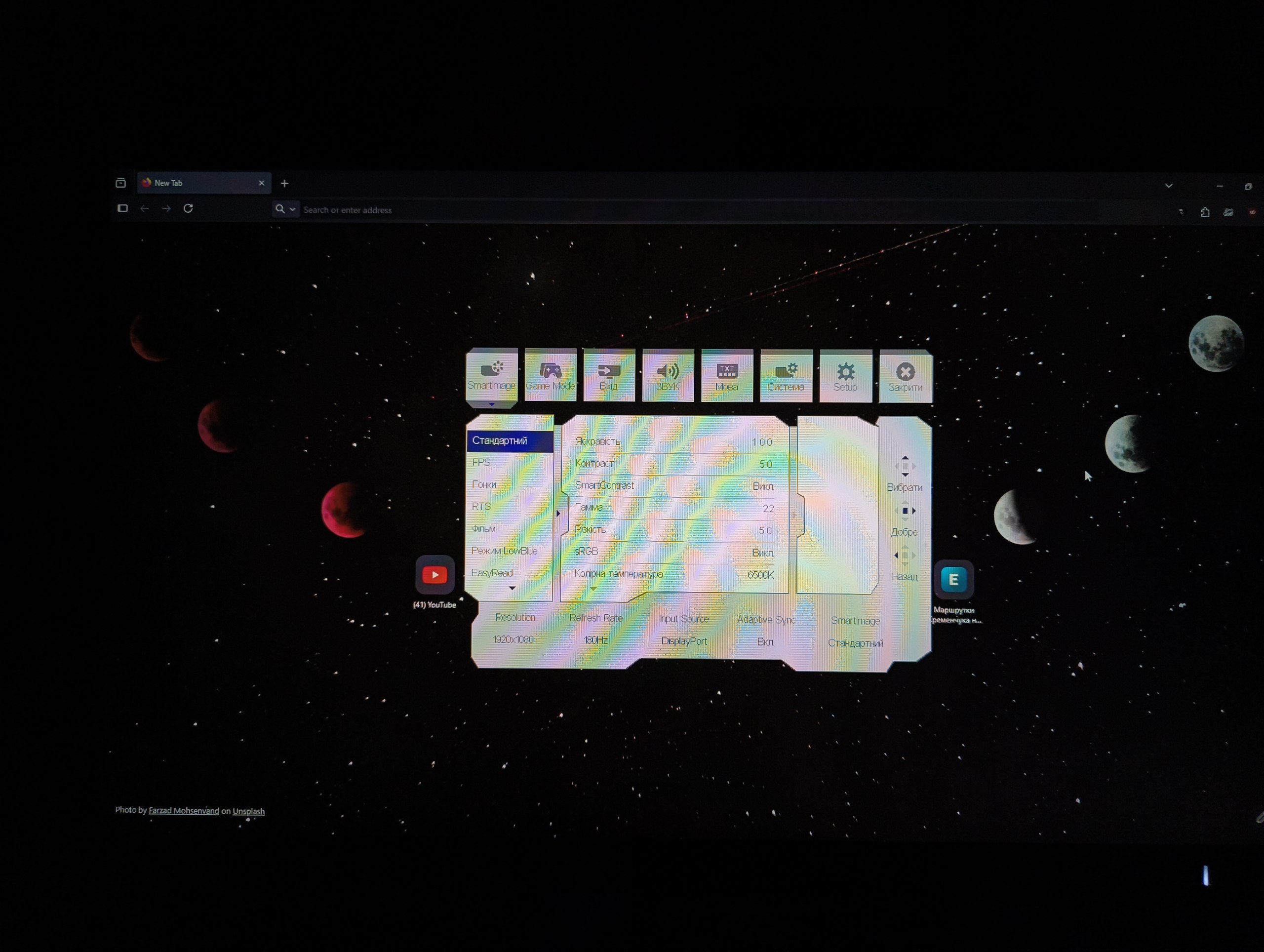 Швидкий монітор на 180Гц, дуже яскравий. Матове покриття прибирає майже всі відблиски. Можна регулювати кут нахилу. У комплекті два швидкісних кабеля — один hdmi та один display port. Зручне у користуванні меню налаштування.