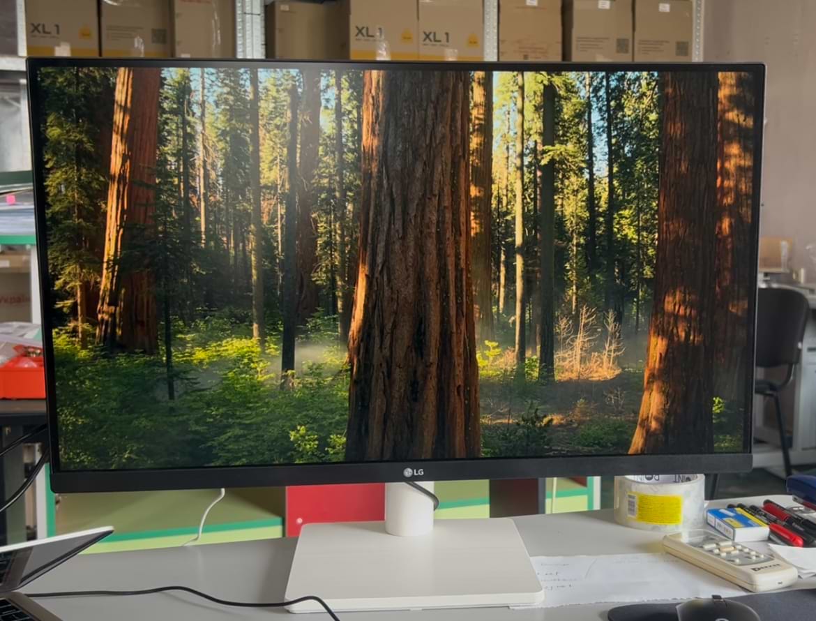 Це мій перший монітор 4К та 27". До цього був 23,7" Acer FullHD. LG більш масивний і важкий (без підставки майже 5 кг). У відгуках писали про «тендітну підставку і вузол кріплення», це тому, що монітор важкий. Сама підставка та ніжка міцні, кріплення надійне, нічого не тріщить, не люфтить. Збирається із коробки просто, все зрозуміло, потрібна лише хрестова викрутка. Нахил екрану регулюється плавно, зручно. Дещо незвична настройка режимів джойстиком, що під логотипом «LG». Картинка дуже гарна, чітка, яскрава, кольори приємні. Пікселів не видно. Битих не було. У монітора завеликі рамки екрану (7,5 мм), ефекту «безрамковості» немає. Комплектний кабель HDMI приємного білого кольору. Блок живлення та кабель від нього до монітору також білого кольору. Майте на увазі: блок живлення та вилка в розетку (євро) це одне ціле, тобто в розетку ви будете вмикати блок живлення цілком, а не окремий кабель з вилкою. В цілому покупкою задоволений, монітор рекомендую!
