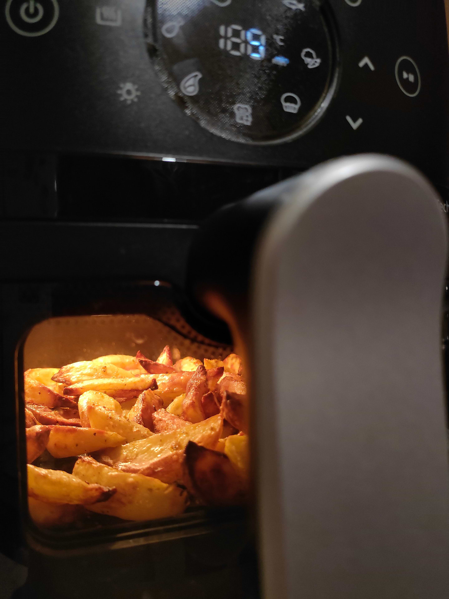 сьогодні випробувала мультипіч, готувала картоплю, всім дуже сподобалася, смачна , підсмажена, а головне це все без олії. Мені девайс дуже сподобався, бо електро духовки не маю, а в газовій так не приготуєш. Я чомусь думала , що запаху не буде, але вентилятор видуває повітря назовні, тому аромати на кухні присутні. Для родини з 2-3 чоловік, підійде, якщо готувати на більше , думаю краще брати більшого розміру.