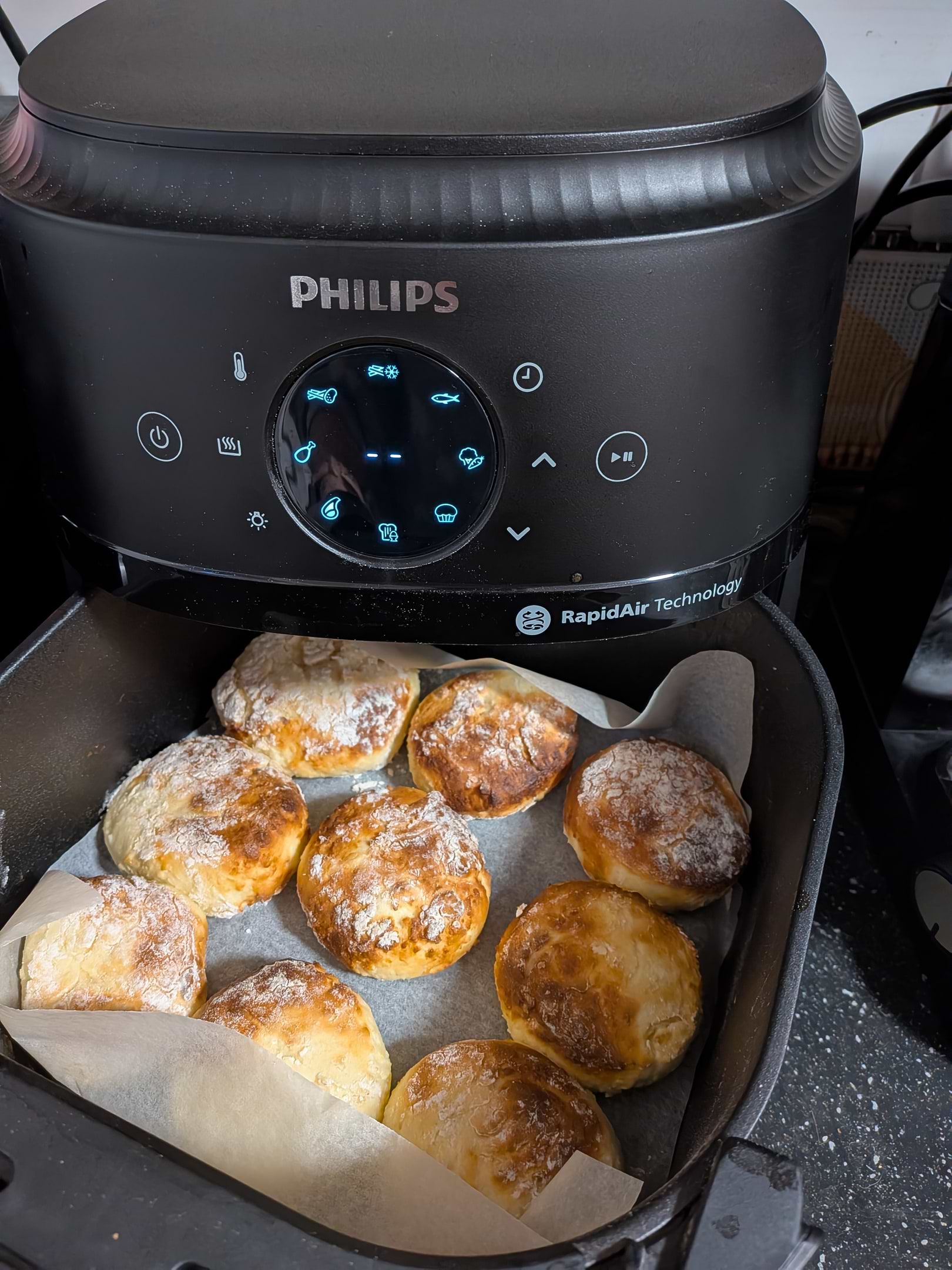 Технология RapidAir с уникальным запатентованным дизайном «starfish» (морская звезда) обеспечивает быструю циркуляцию горячего воздуха для приготовления вкусной еды, хрустящей сверху и нежной внутри, практически без масла.