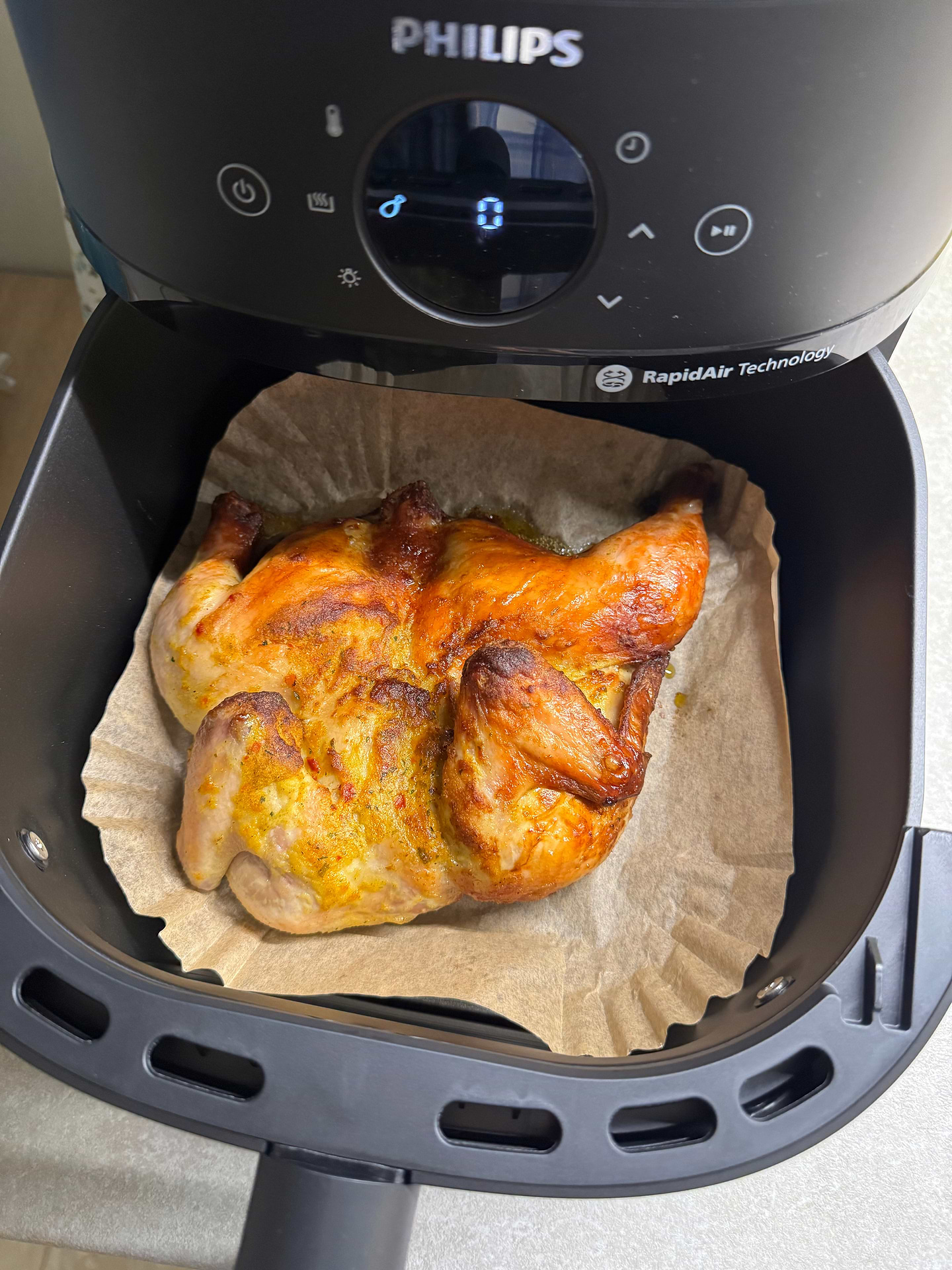 Дуже корисна річ, їжа готується швидко, мʼясо соковите та з хрусткою скоринкою!