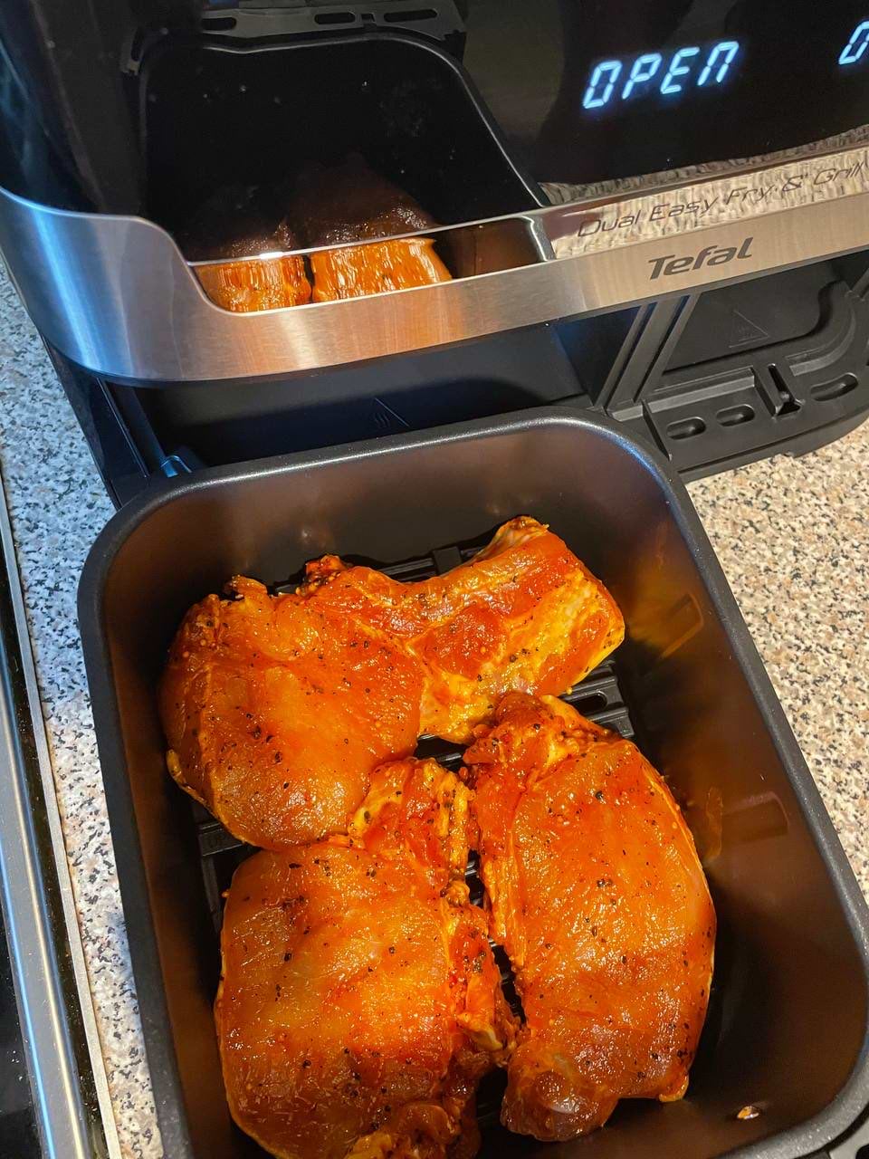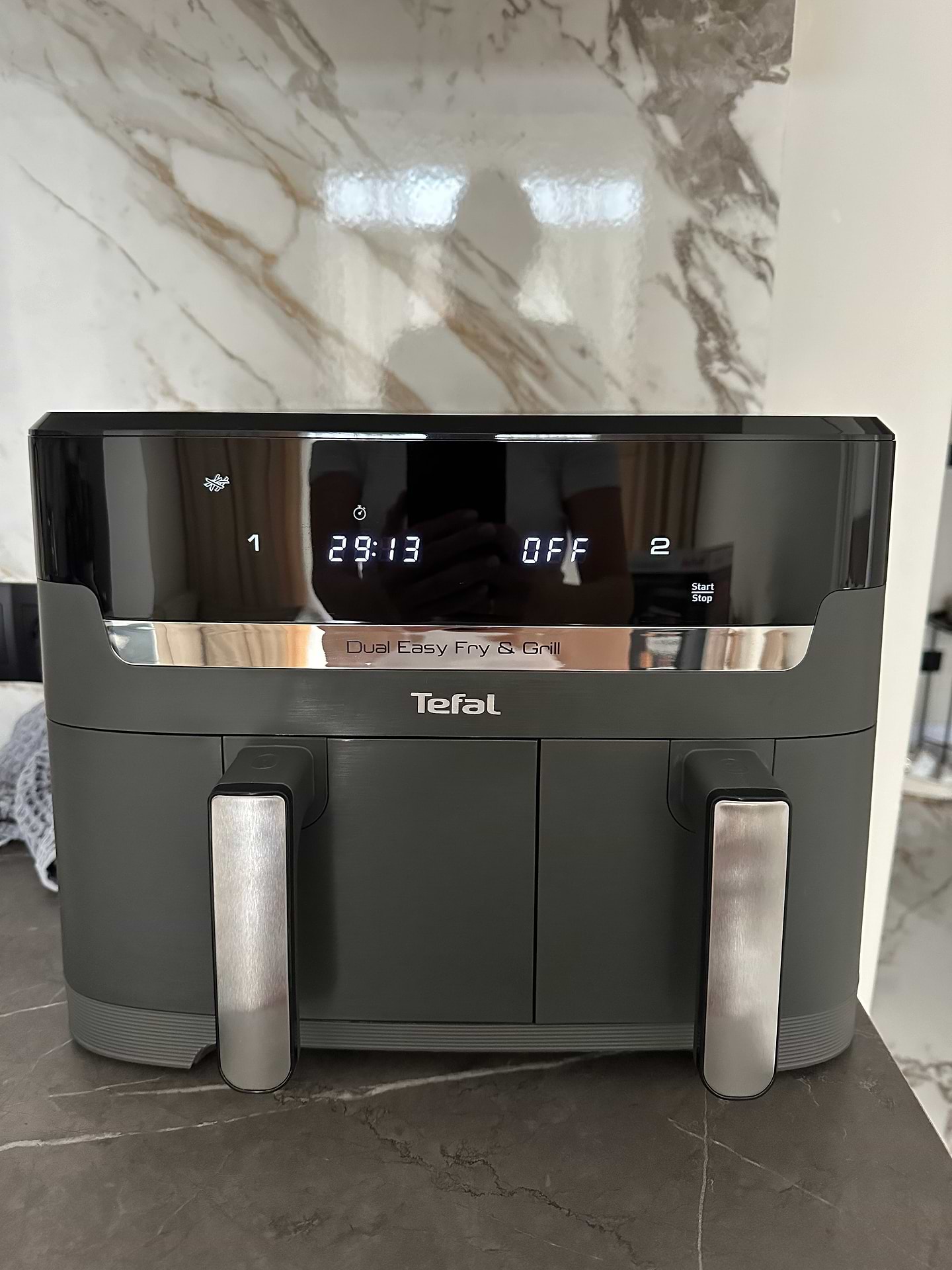 дуже задоволений покупкою!!! перше приготування вечері прказало наскільки все просто та зручно! Страви на грилі вийшли дуже смачно та відносно швидко.Гарна функція синхронизації, два лотка - дві страви! як завжди Tefal на висоті, всім рекомендую!