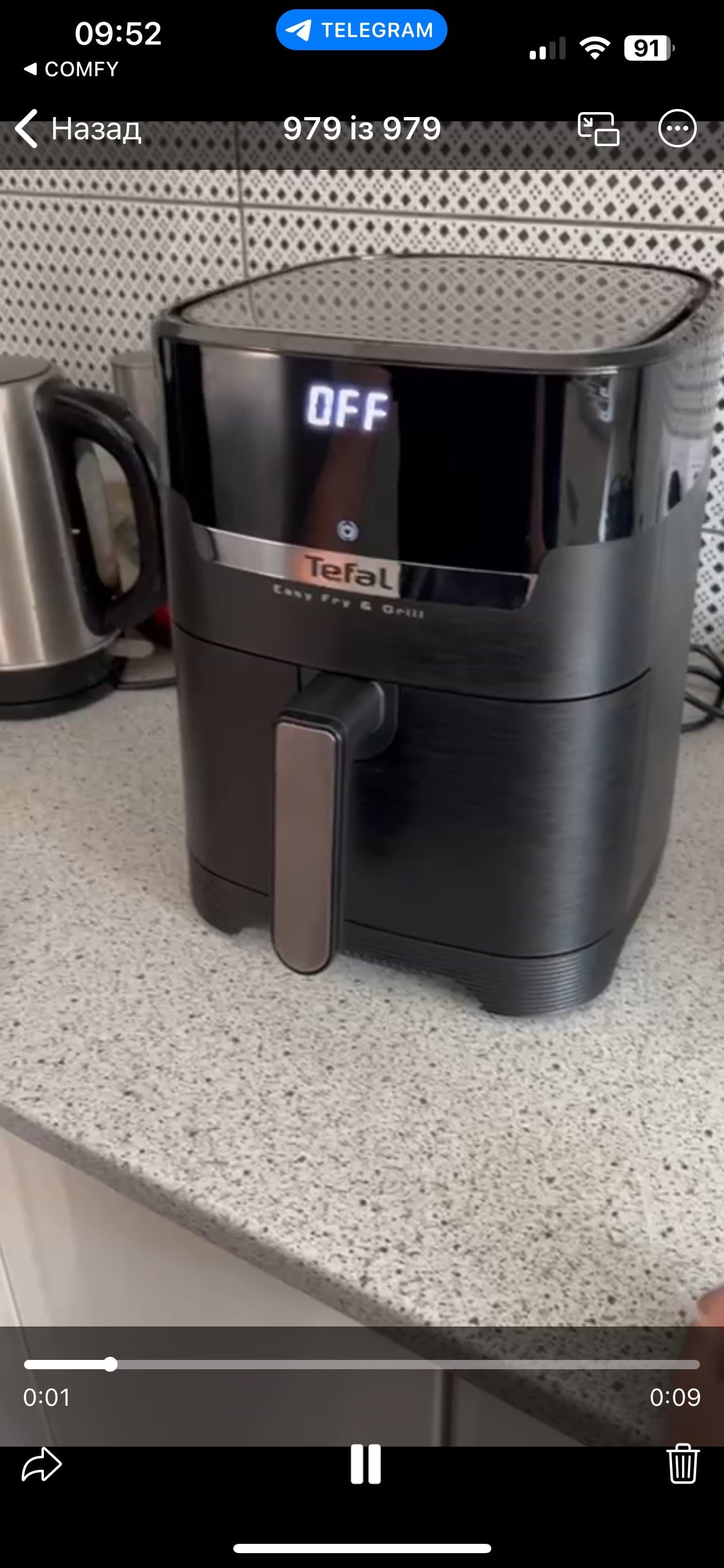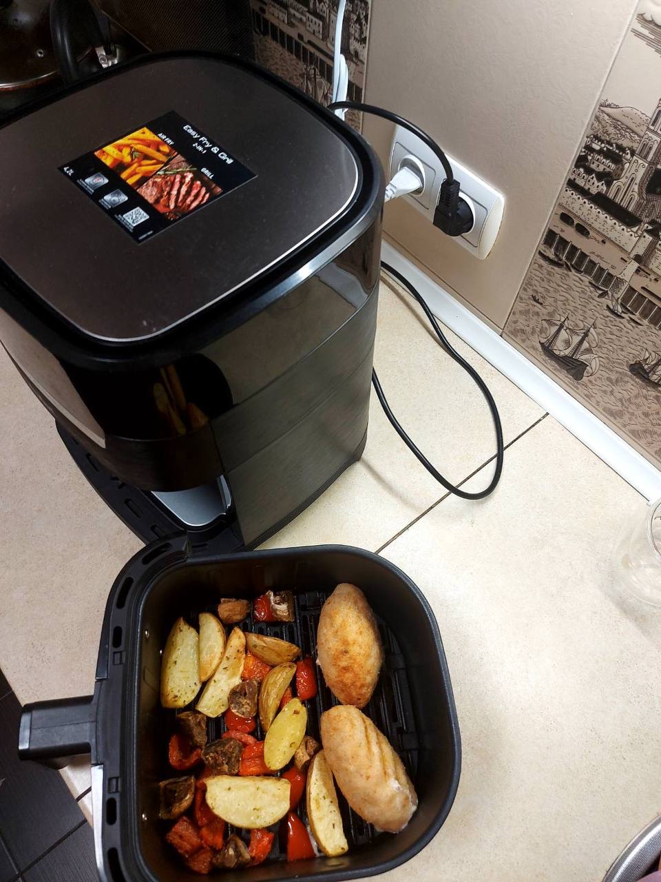 Вона чудова. Проста в користуванні. Я тепер готую тільки в ній. Набагато зручніше ніж в духовці. Немає бризок жиру, і мити не довго на відміну від духовки. Олії практично не потрібно і заглядати до неї часто не треба, хіба що перевернути або перемішати. Враження найприємніші, компактна.