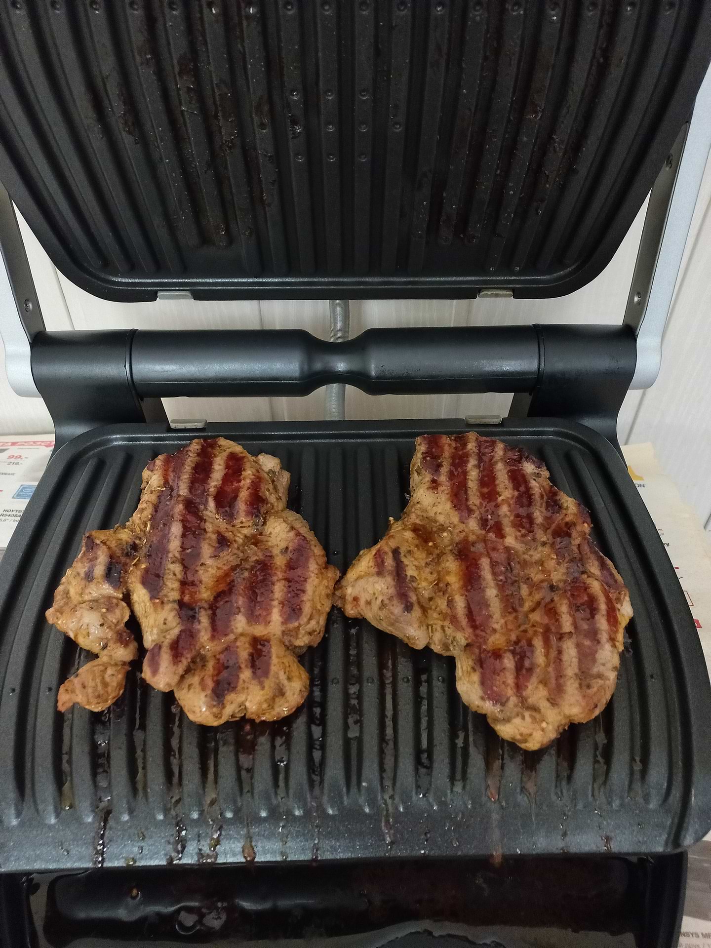 Купила мультипечь неделю назад. Очень удобная вещь на кухне. Готовила куриные бедра, картофель поселянски и свиной стейк. Имея уже у себя гриль Optigril, решила купить мультипечь. В мультипечи стейк получился более сочным и немного недожаренным, не такой зажаренный и красивый как на гриле с сенсором. Но это на любителя. Пришлось добавить время и все ок.