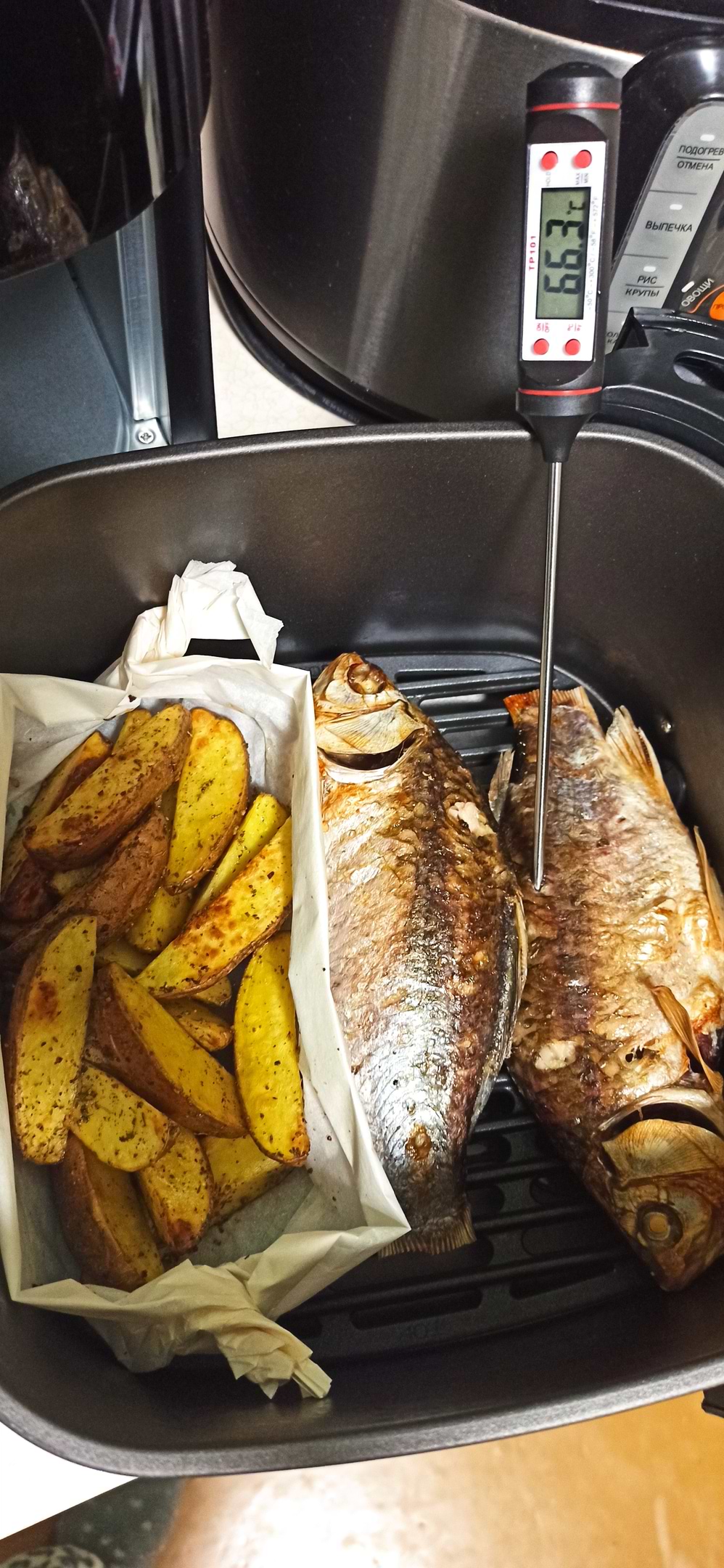 Вчора придбала цю чудотехніку. Дуже задоволена покупкою. Вже приготувала картоплю фрі. Вийшло дуже смачно, але при нарізанні не потрібно робити дуже дрібні шматочки, бо провалюються під решітку гриля і не дуже просмажуються. Також приготувала м'ясний рулет, вийшов смачний і соковитий, краще ніж у духовці і удвічі швидше, використовувала програму для приготування курки. Дуже рекомендую саме цю модель, адже за розмірами вона доволі компактна, а чаша для приготування велика.