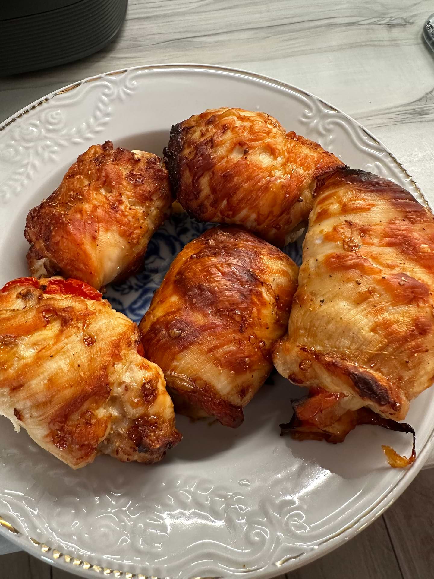 Фаршировані запечені перці,стегенця та картоплю і все це було дужеее смачно і без додавання олії.