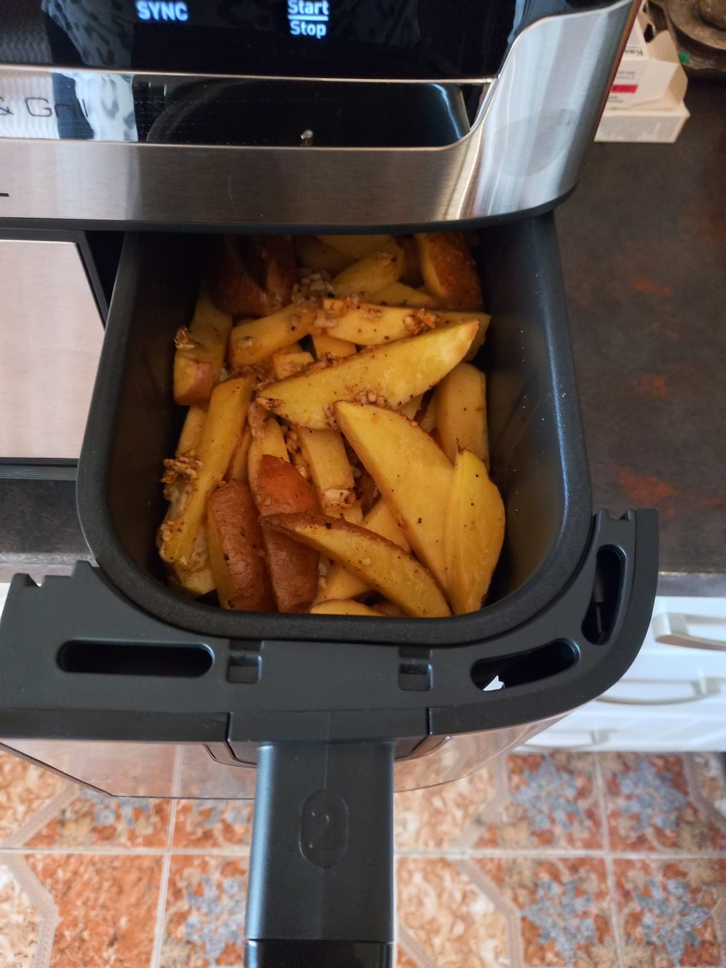Купила мультипіч піддавшись рекламі і рекомендаціям знайомих, вирішила приготувати рульку і картоплю по селянськи, піч має функцію синхронизації тобто одночасно готує 2 страви, картопля в мене готувалась 30 хв а рулька 45 то під час синхронизації м'ясо починає готуватись першим, і через 15 хв включилась картопля, в процесі треба перемішати продукти (вона сама подає сигнал) то коли ти відкриваєш піч приготування вимикається, і чекає щоб знову почати одночасно. Цікава техніка, розумна, стояти над нею непотрібно, хороший помічник на кухні, скачали рецепти буду експерементувати, рекомендую!)