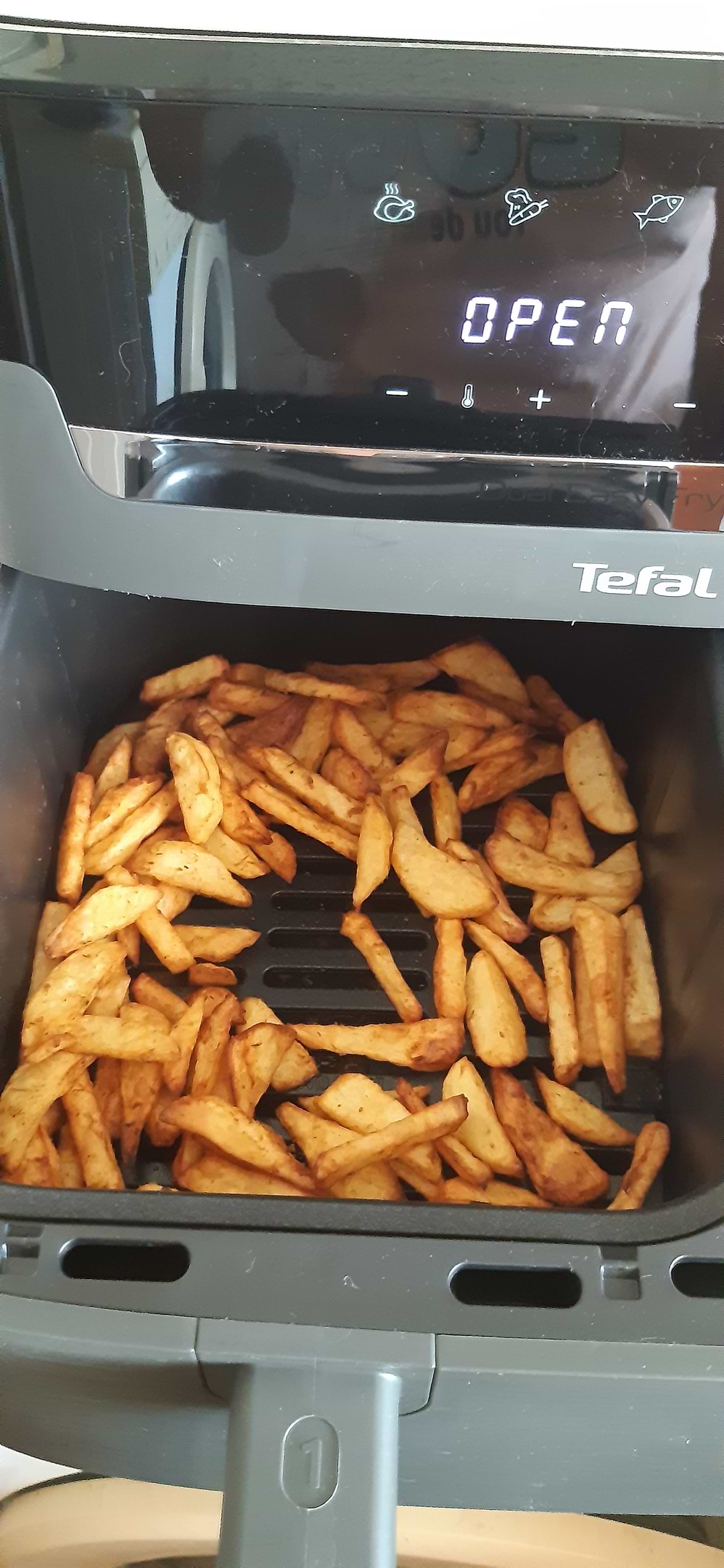 Картошку я видимо не так подготовила изначально, поэтому пришлось увеличить время приготовления, но это не отменило факт того, что она была с идеальной корочкой и без жира!