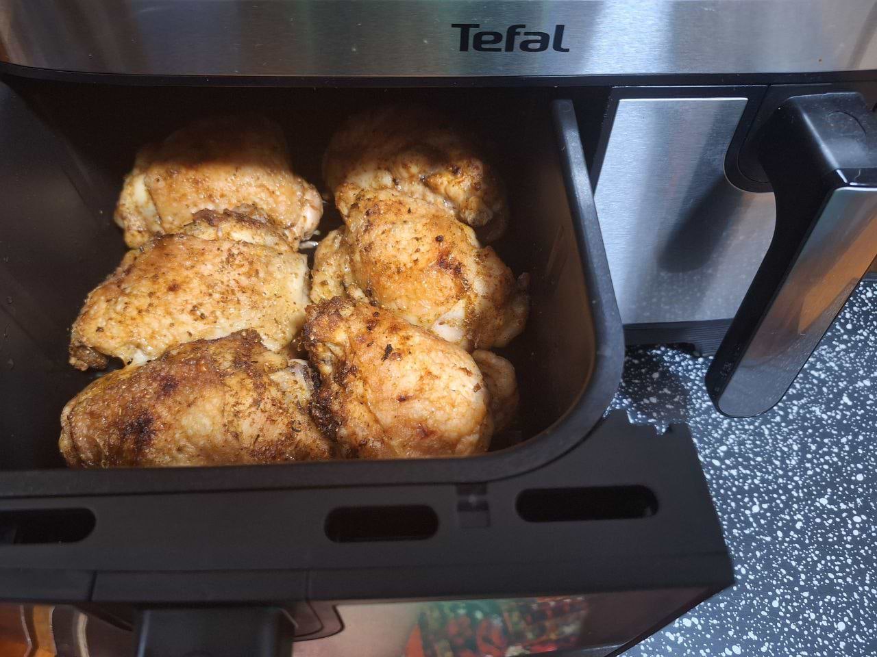 Овочі готувати в один шар - дуже довго виходить мало. Ще швидко залапується. Мало рецептів, додаток Тефаль взагалі не має розділу аерогрилі