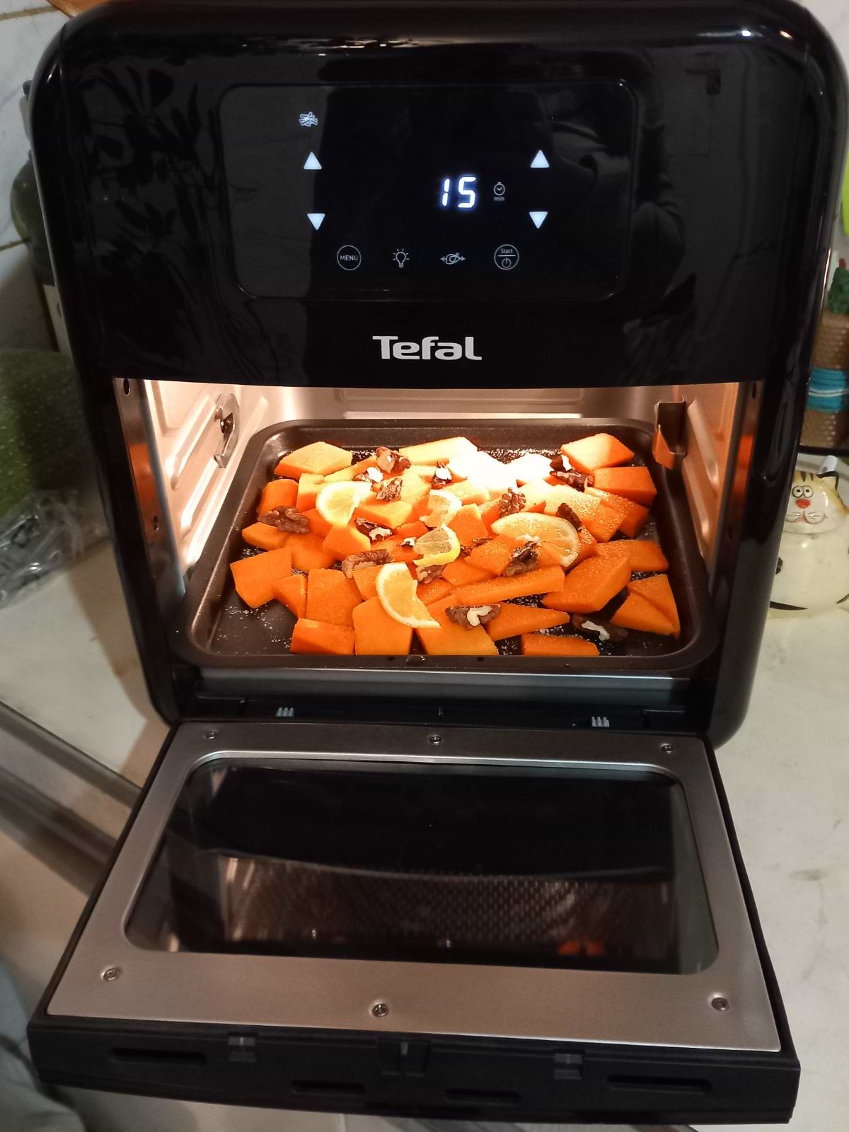Чудовий прилад замість духовки, ми придбали на дачу. То вожу її до дому тепер)) По перше і мити її простіше й олії менше треба. Готує швидко та надає можливість приготування безліч страв зі смачною скоринкою та соковитістю всередині. Дуже вона мені подобається!!