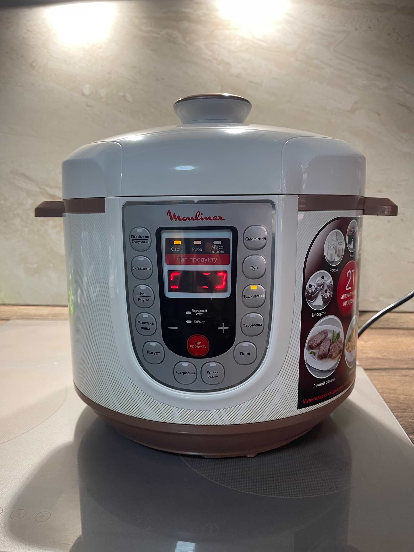 Дуже задоволені покупкою!!!Овочеве рагу за 10 хв-це бомба:смачно,корисно,швидко!!!Шарлотка-теж !!!Легке і зрозуміле управління!Легко мити!!!МЕНЮ УКРАЇНСЬКОЮ!!!Зʼємна кришка!!!Рекомендую!!!
