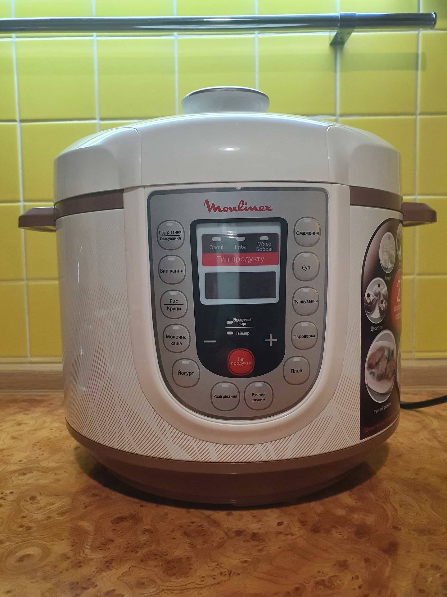 Пользуюсь этой мультиваркой уже 3 года. Перед ней тоже была Мулинекс, и проработала отлично. Хорошая керамическая чаша, вместительная(5 л), хватает на всю семью. Управление очень простое и легкое, у меня даже 8-ми летняя дочь разобралась. Плов получается просто превосходный, так же как и выпичка. Рекомендую!